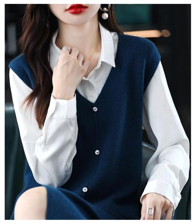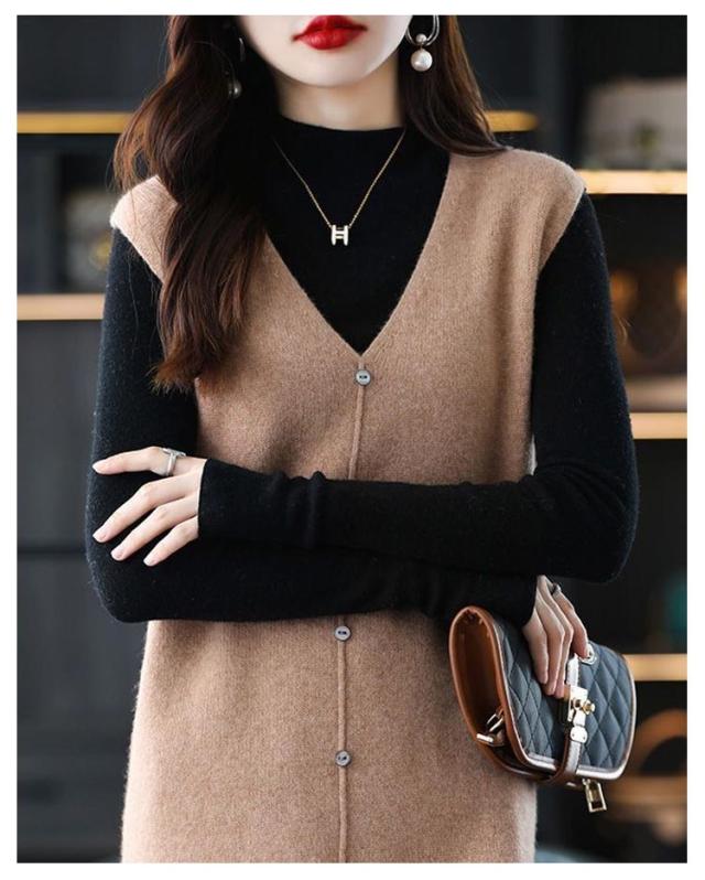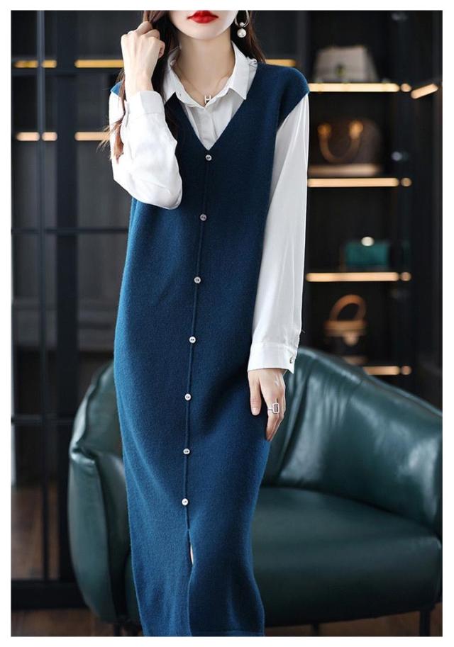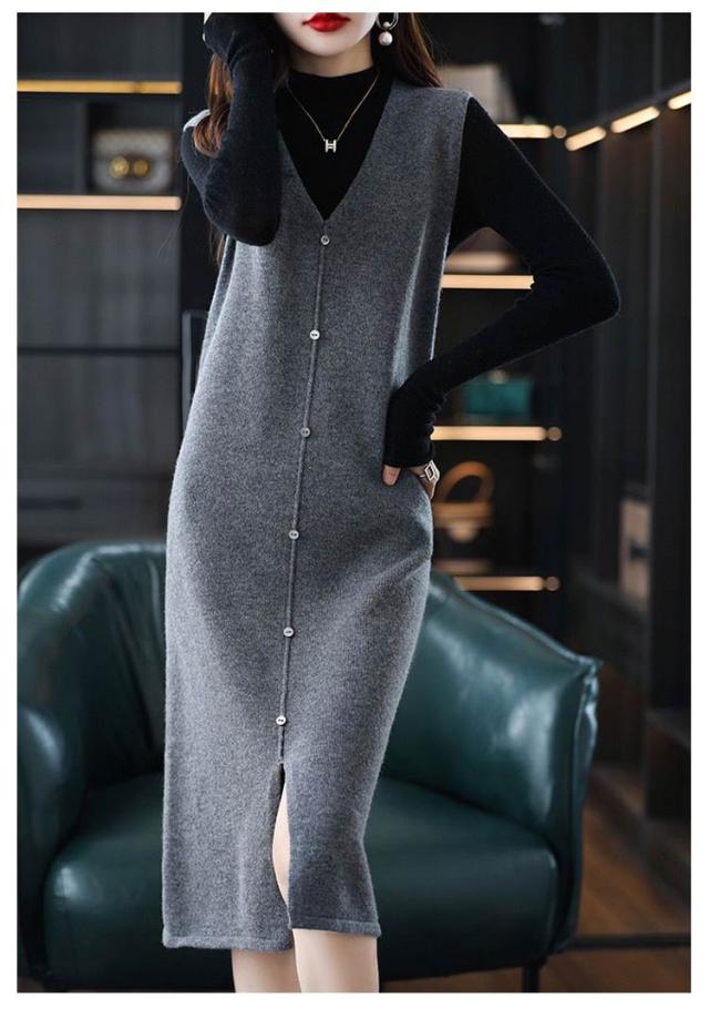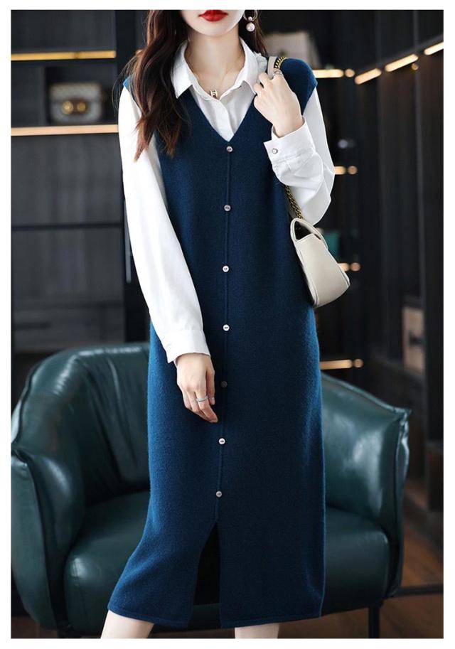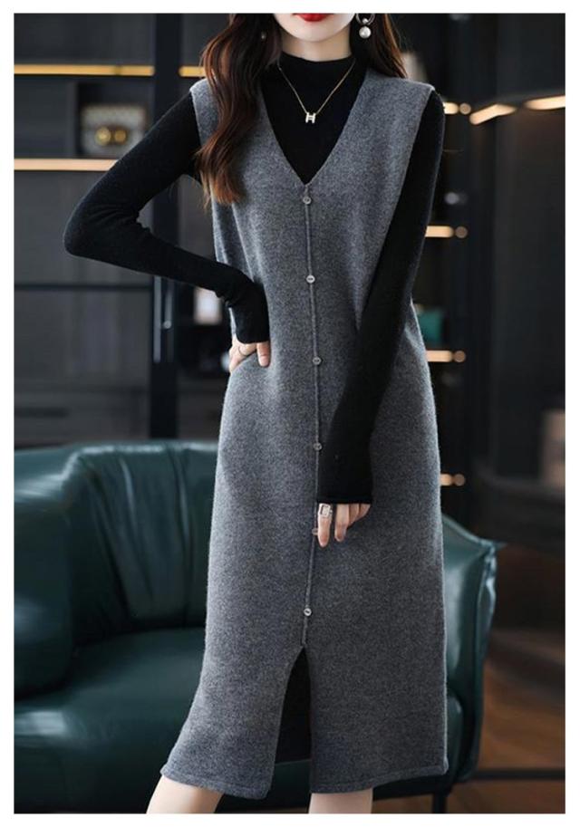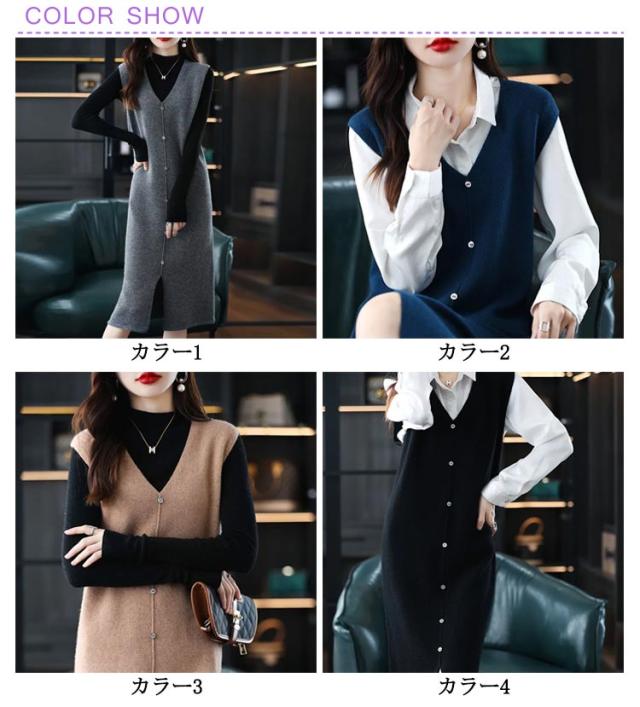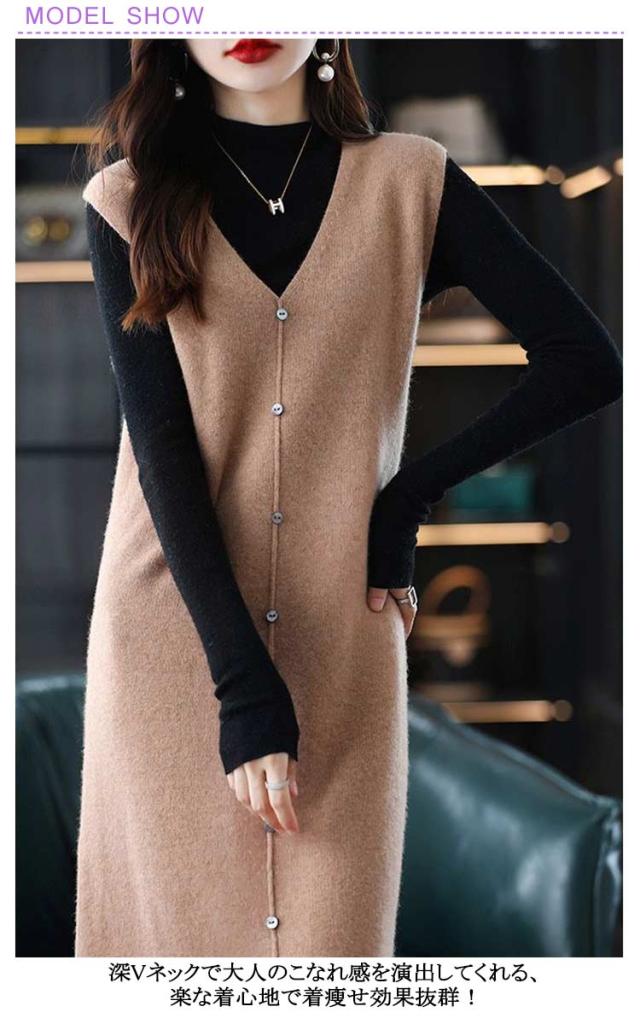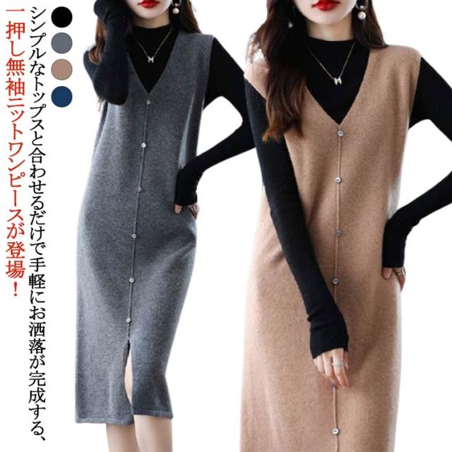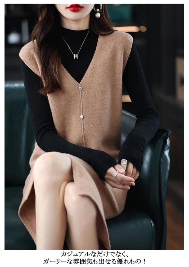 ニットベスト レディース 大人カジュアル 膝丈 ボタン ベストワンピース スリット入り ミドル丈 Vネック レイヤード S エレガント ニットワンピース 春 秋 ニットワンピース M L XL 2XL