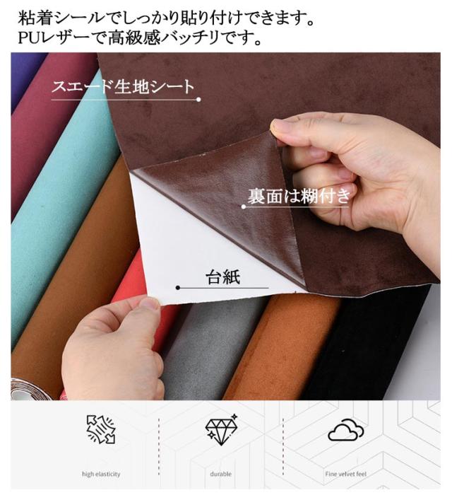 | 全13色×2サイズ! スエード調合皮補修シートです。 柔らかく微弾性があり、防水性と耐摩耗性に優れています。 ソファや椅子などの家具やインテリアの皮製品、自動車やバイクのシートや内装、バックの底あて、財布やキーケース、ベルトなどの小物まで、幅広い革製品の修復にご利用いただけます。 好きな形に切って貼るだけだから手芸や洋裁、小物づくりなどハンドメイドにもおすすめです。 粘着でしっかり貼り付けできます。 PUレザーで高級感バッチリです。 手芸品や民芸品、工芸品などのDIYにもご利用いただけます。 | |