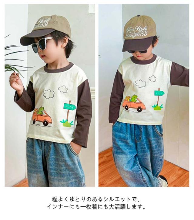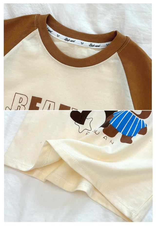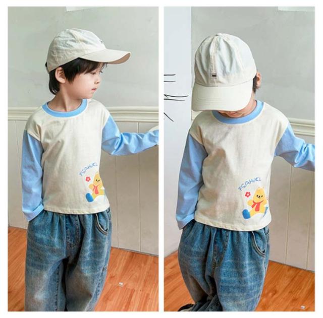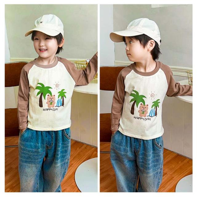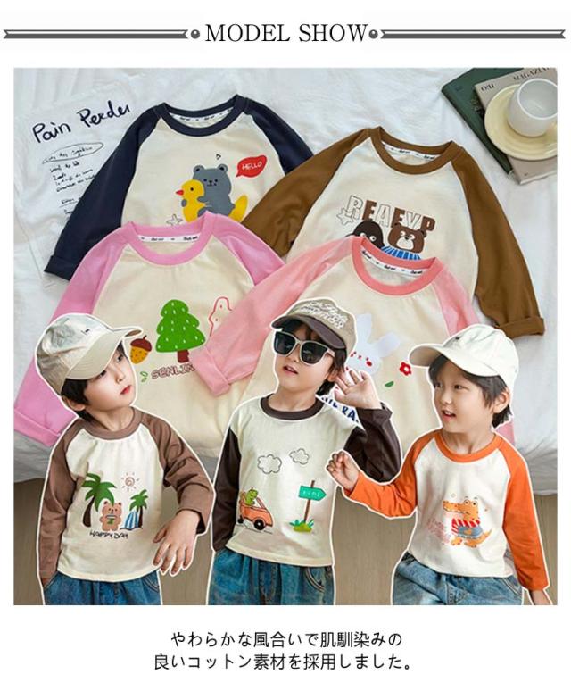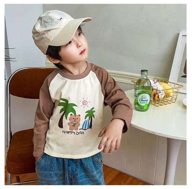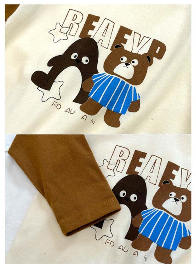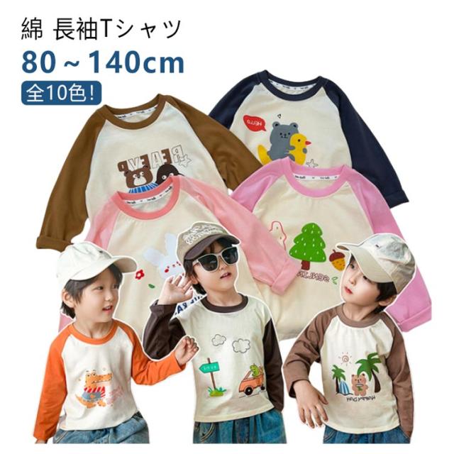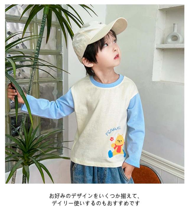 長袖 キッズ服 シンプル 男の子 インナー Tシャツ ロンT 綿 女の子 子ども服 キッズ こども服 子供服 長そで コットン トップス くま アニマル柄 トップス クルーネック 長袖 通園 通学 小学生 保育園 幼稚園