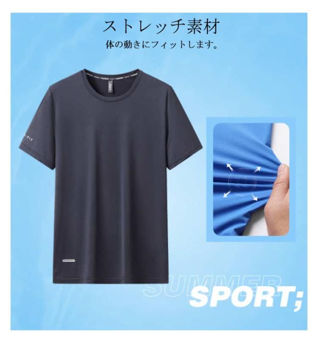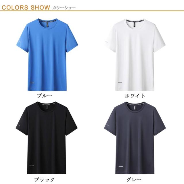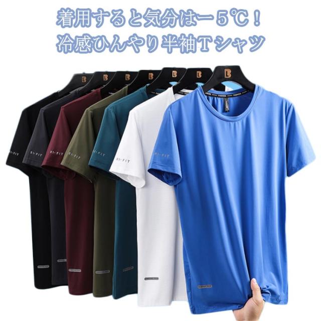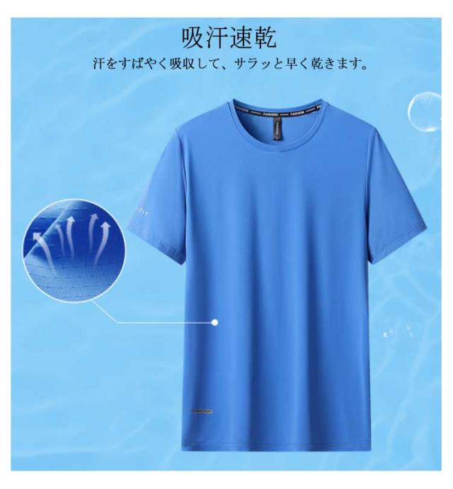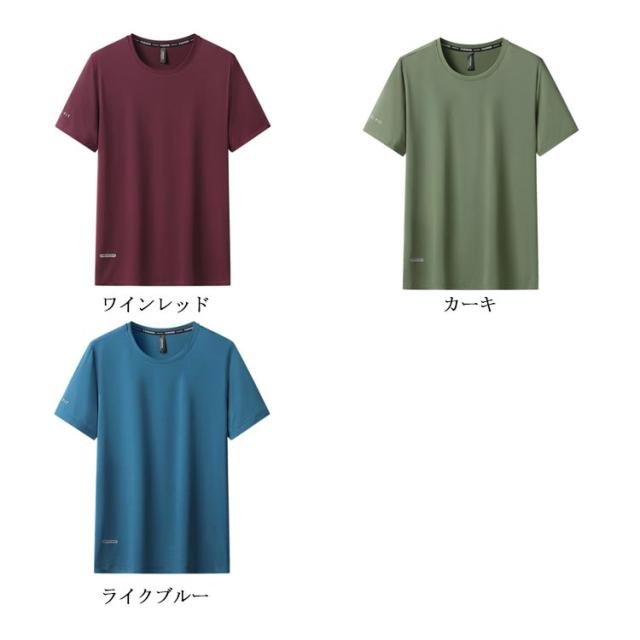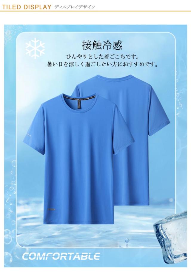 接触冷 スポーツ 冷感 軽量 Tシャツ アイスシルクTシャツ ひんやり 無地 半袖 カットソー メンズ アイスシルクTシャツ 涼しい 薄手 UVカット tシャツ Tシャツ 速乾 クールネック 夏 通気性 ドライ