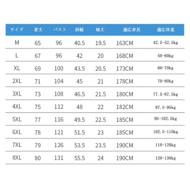 | サイズ | M L XL 2XL 3XL 4XL 5XL 6XL 7XL 8XL |