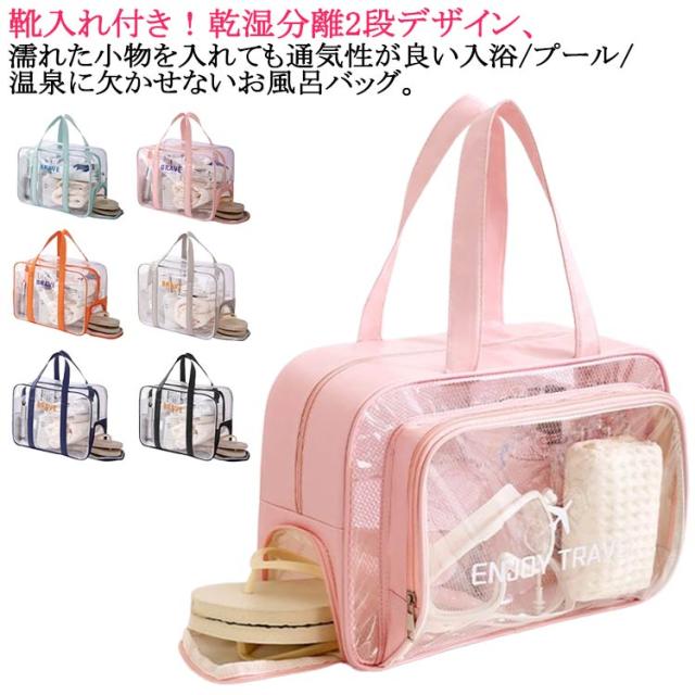 | 靴入れ付き!乾湿分離2段デザイン、濡れた小物を入れても通気性が良い入浴/プール/温泉に欠かせないお風呂バッグ。 コンパクトに見えてマチがひろいのでシャンプーボトルやボディーソープ、洗顔料や厚みのあるスポンジタオルも入ります。 銭湯や温泉で使う温泉バッグだけではなく、スパ、プール用として自分専用のボディーケアグッズやスキンケアグッズの入れ物としてもおすすめです。 | |