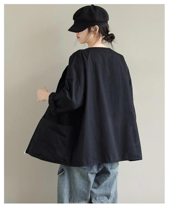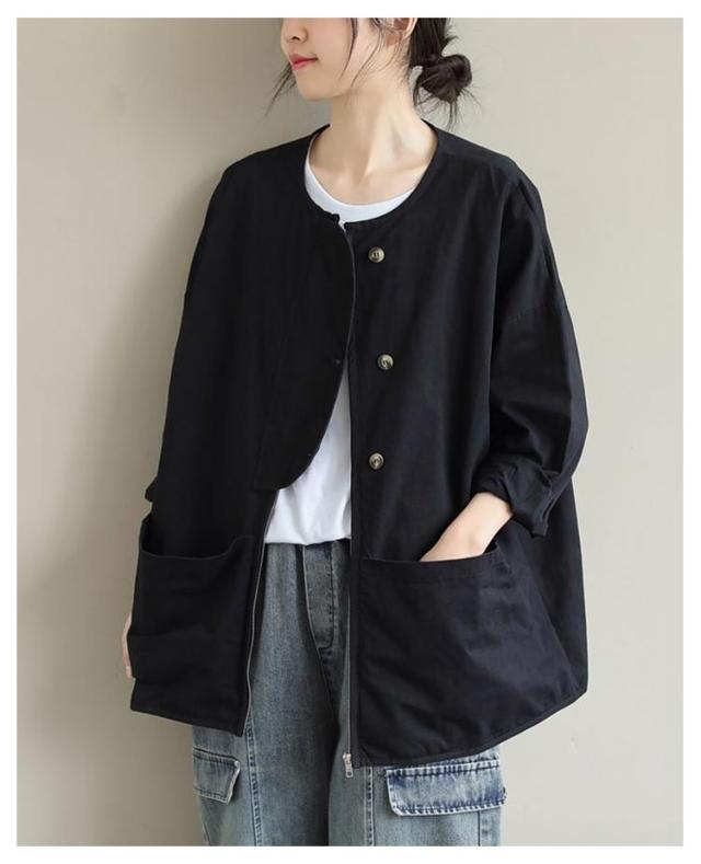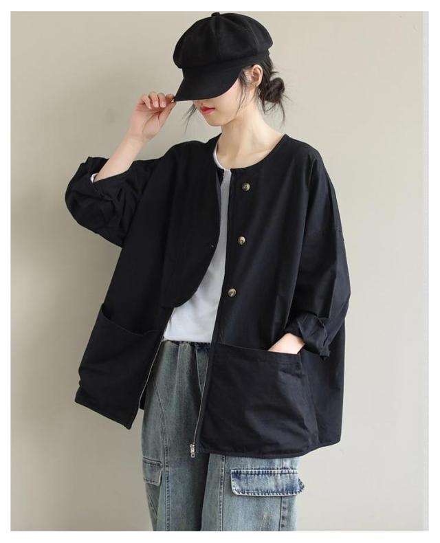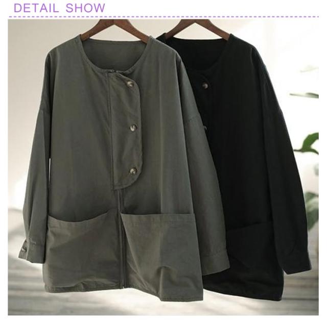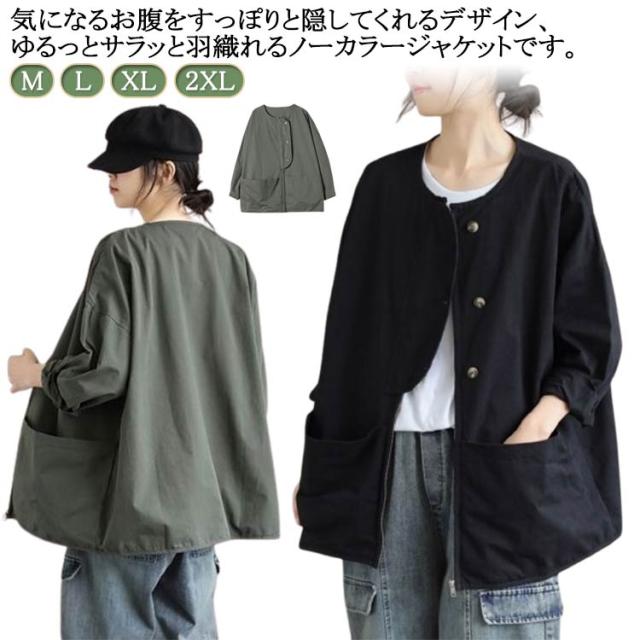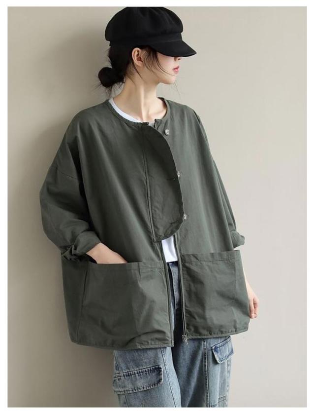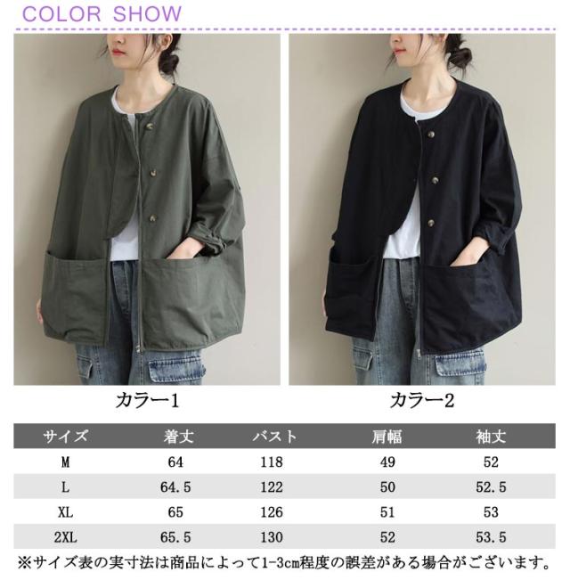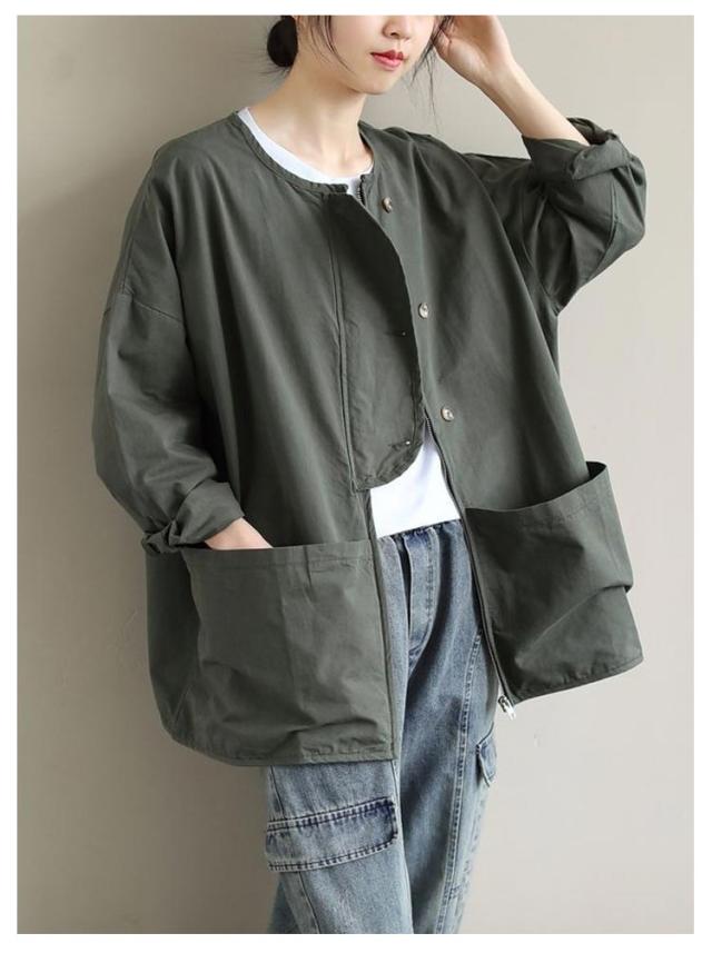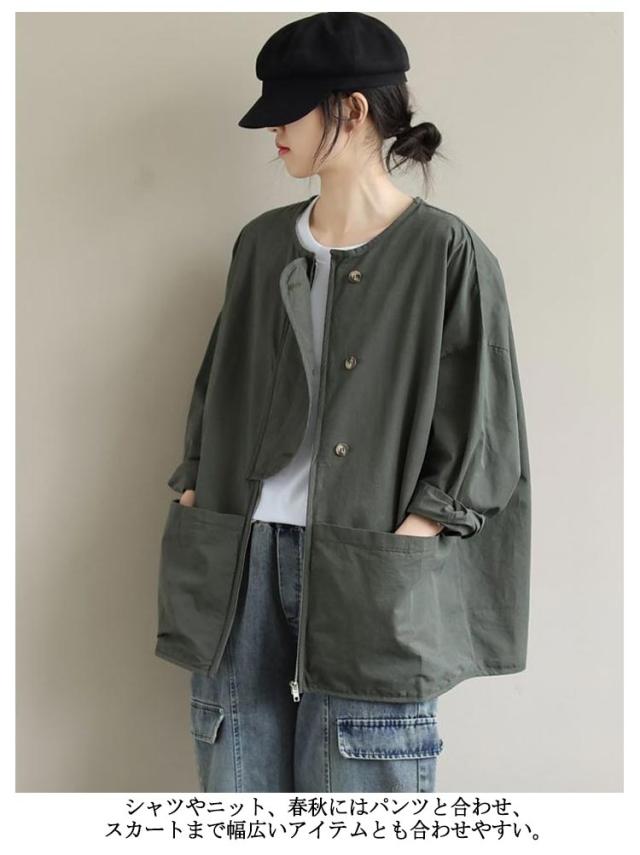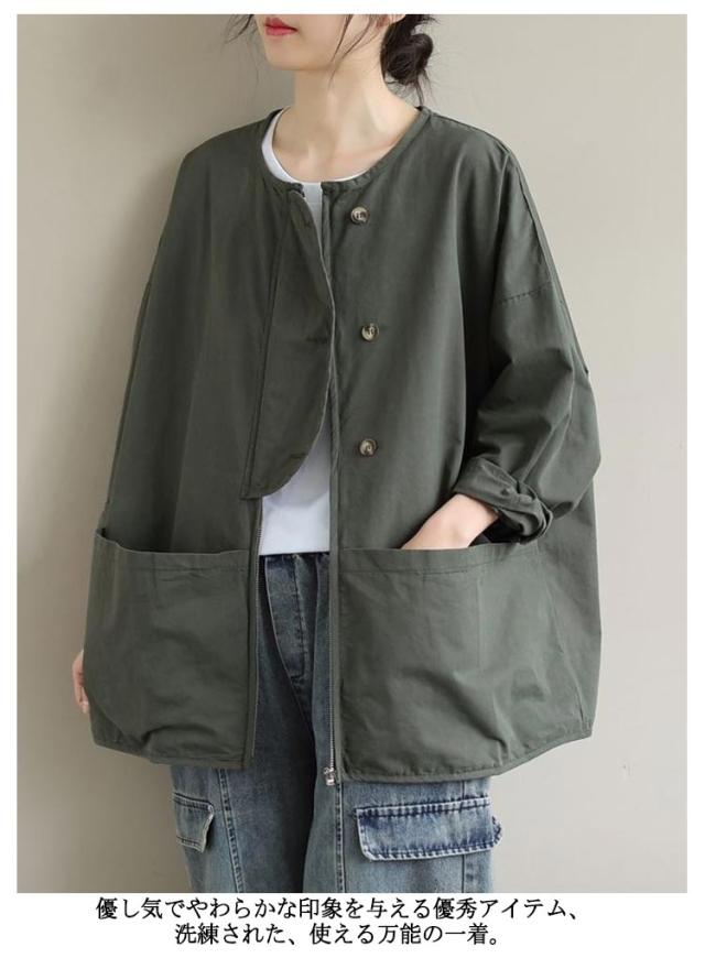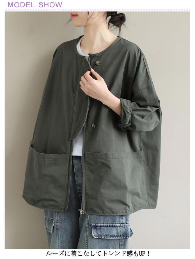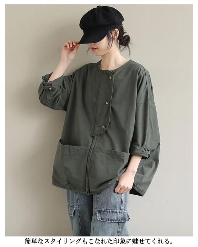 ビッグポケット マウンテンパーカー ブルゾン ノーカラー ジャケット ノーカラージャケット 長袖 レディース ライトアウター 体型カバー 秋ジャケット ゆったり 秋コート ビッグシルエット カジュアル M L XL 2XL