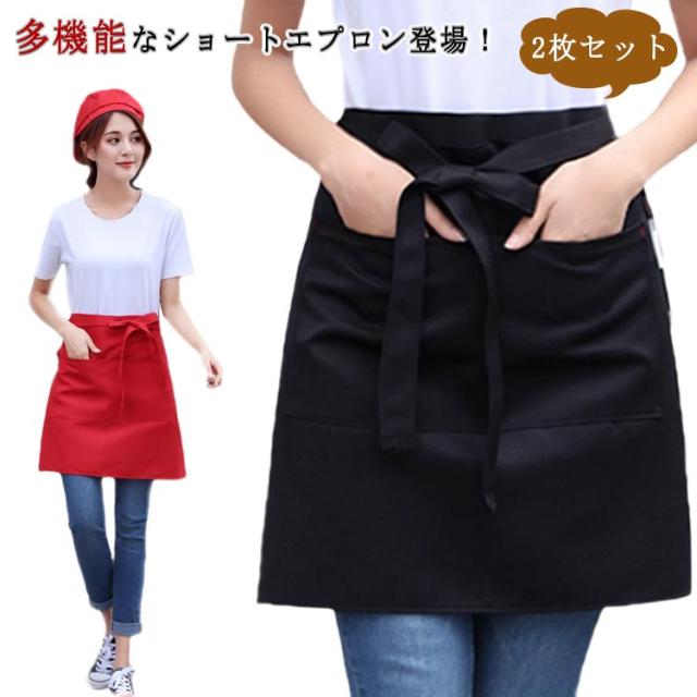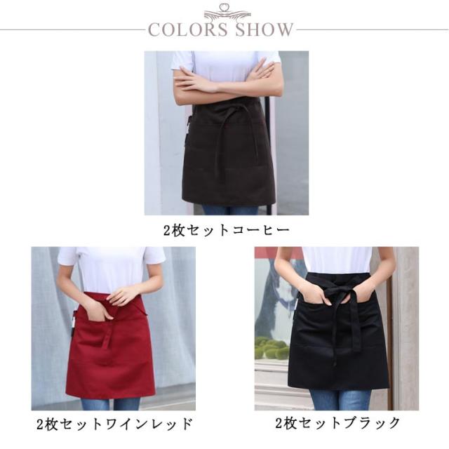 調理 【2枚セット】エプロン 【2枚セット】エプロン カフェ 前掛け 保育士 ショート丈 ソムリエ 腰下エプロン 撥水 飲食店 メンズ 作業用 キッチン ユニフォーム 汚れ防止