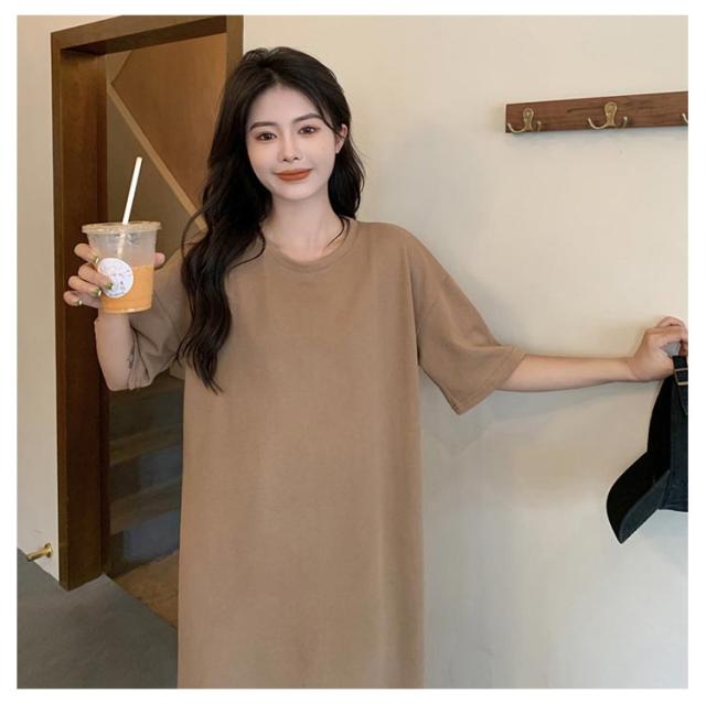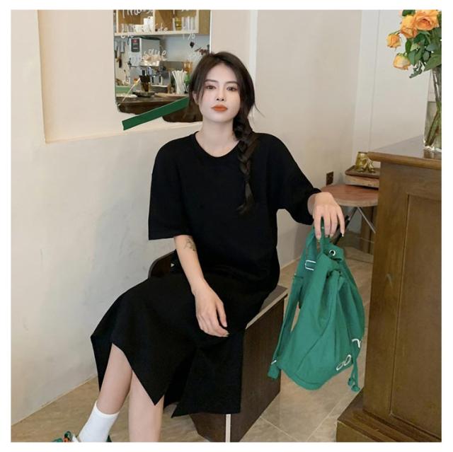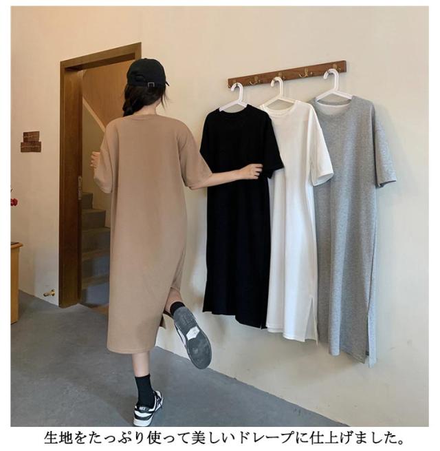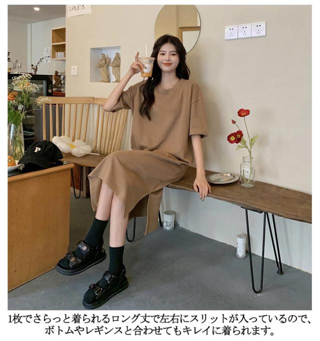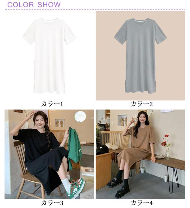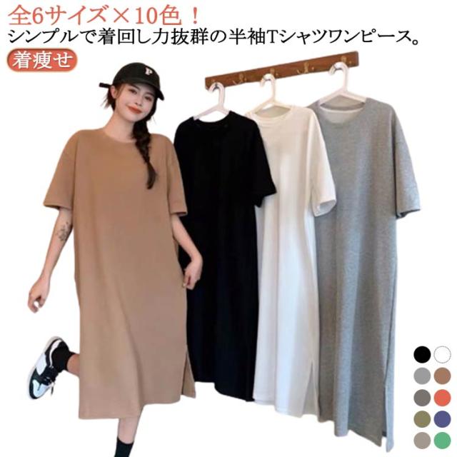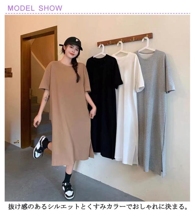 全10色 ワンピース レディース ゆったり 丸首 全10色 スリット入り 無地 夏 春 tシャツワンピース tシャツ 細見え 体型カバー ロング 着痩せ ロングTシャツワンピ きれいめ ルームウェア マタニティ おしゃれ オフィス リラックス 通勤 M L XL 2XL 3XL