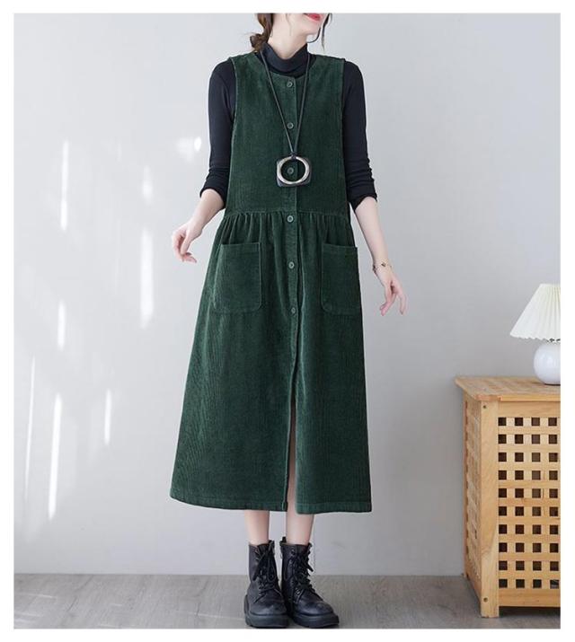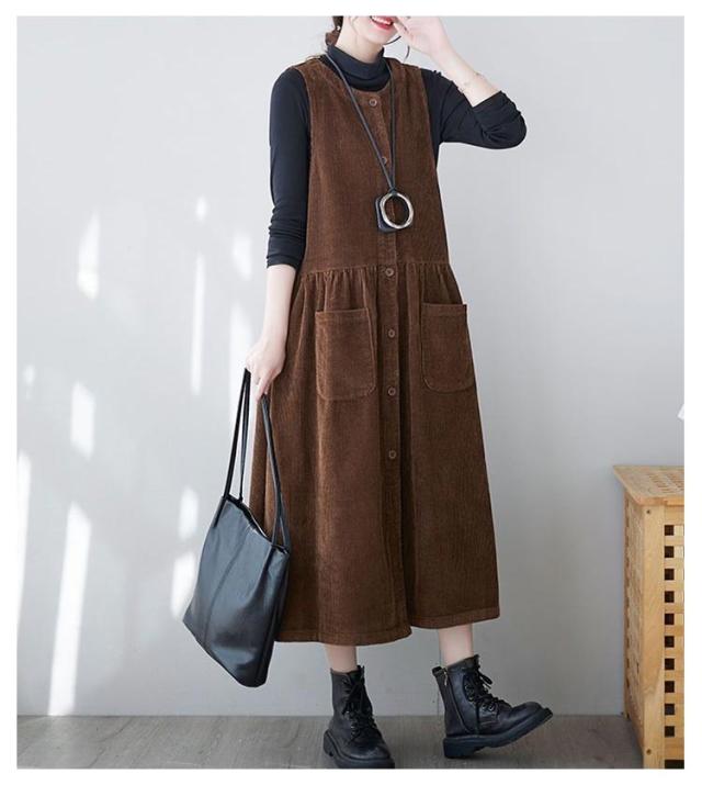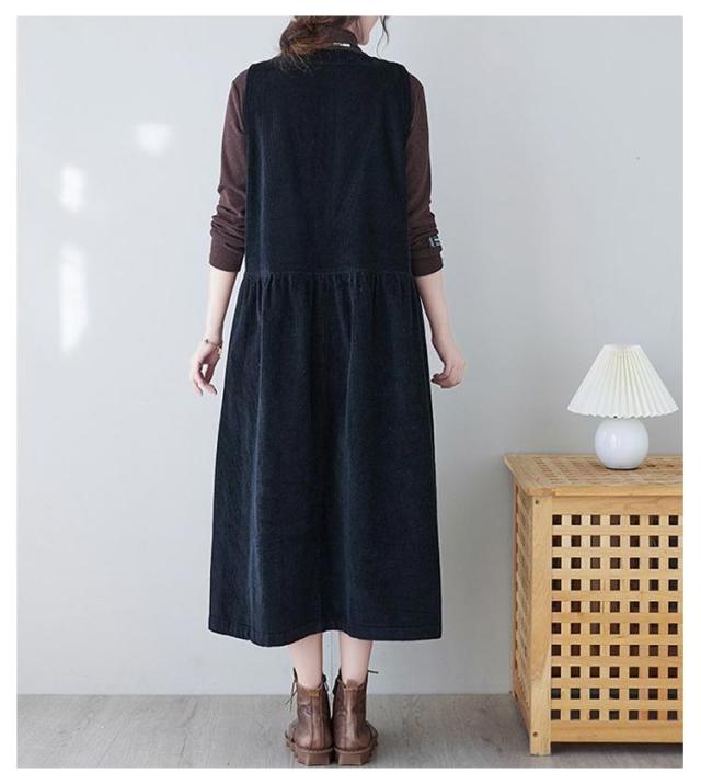 ジャンパースカート ノースリーブ おしゃれ ワンピース ジャンパースカート コーデュロイ 大人 オールインワン オーバーオール 春 秋 きれいめ コーデュロイ レイヤード ロングワンピース M L XL