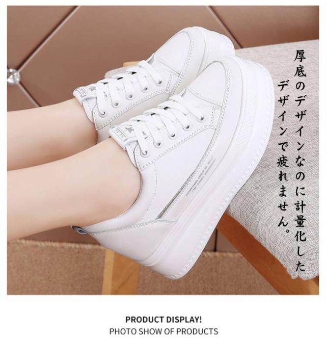 厚底 歩きやすい インヒール 7cm身長アップ シューズ 厚底シューズ 編み上げ レディース 厚底靴 7cm身長アップ レースアップ シークレットシューズ 疲れない スニーカー 白 美脚