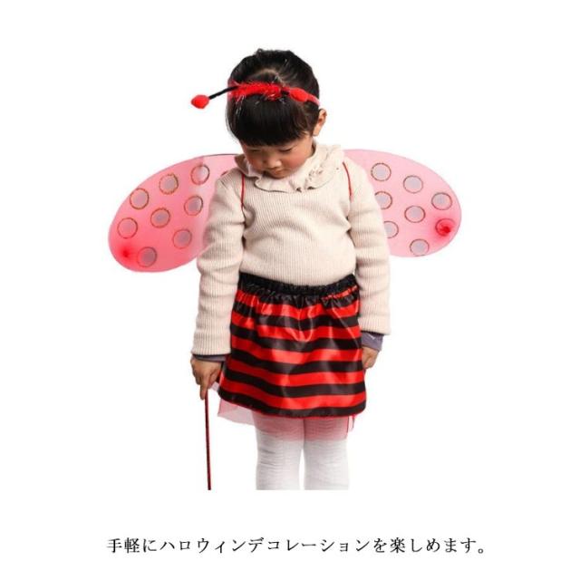 コスプレ衣装 翼 スカート 子供用 【4点セット】コスプレ てんとう虫 蜂 ミツバチ 仮装 ハチ 【4点セット】コスプレ テントウムシ ふんわりスカート チュチュ チュール コスチューム キッズ ハロウィン仮装 子ども用 女の子 男の子 パーティーグッズ