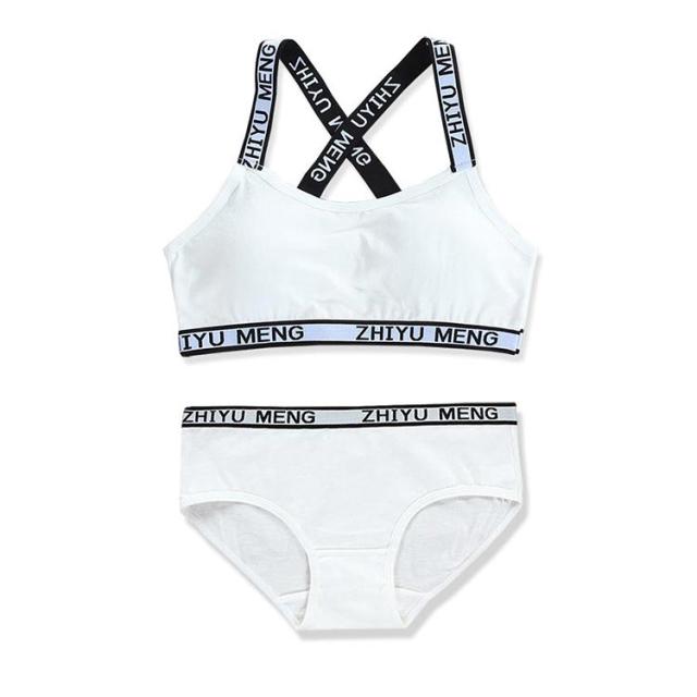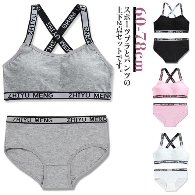 キッズ 子供 下着セット 肌着 スポーツブラ 無地 ショーツ カップ付き レディース ジュニア向け 子供用下着 パンツ 2点セット 女の子 リブ英字ロゴ インナー アンダーウェア ジュニア向け ショーツ スポブラ 綿 コットン 子供 小学生 中学生 高校生