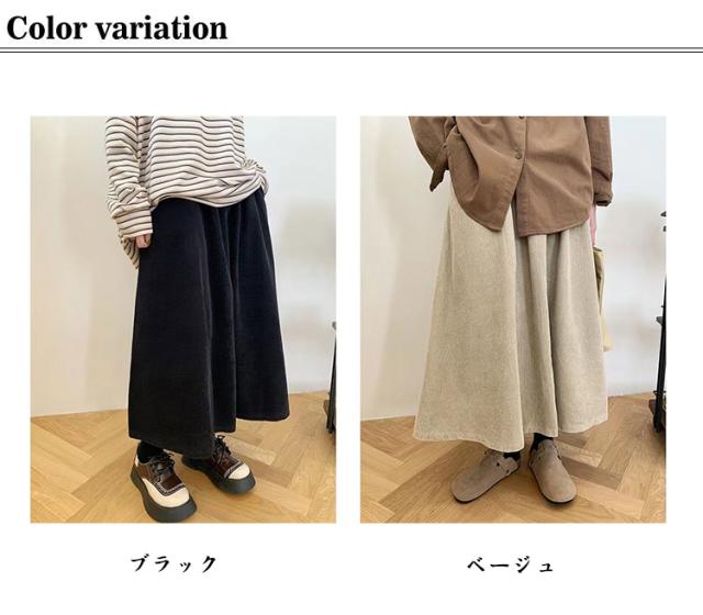 マキシ丈 冬 通勤 膝下 ひざ下 スカート ロングスカート コーデュロイスカート フレアスカート 大きいサイズ コーデュロイ ゆったり 秋 レディース ボトムス Aライン ウエストゴム 春 冬 コーデュロイ暖かい 韓国 膝下 オフィス 入園式 卒業式