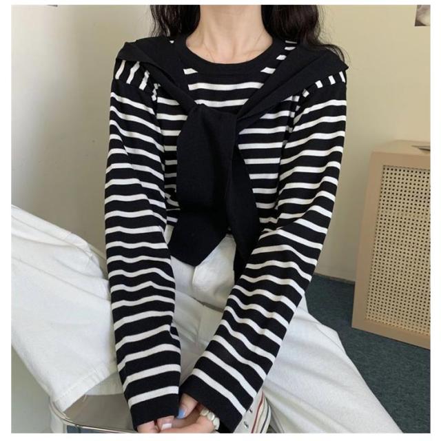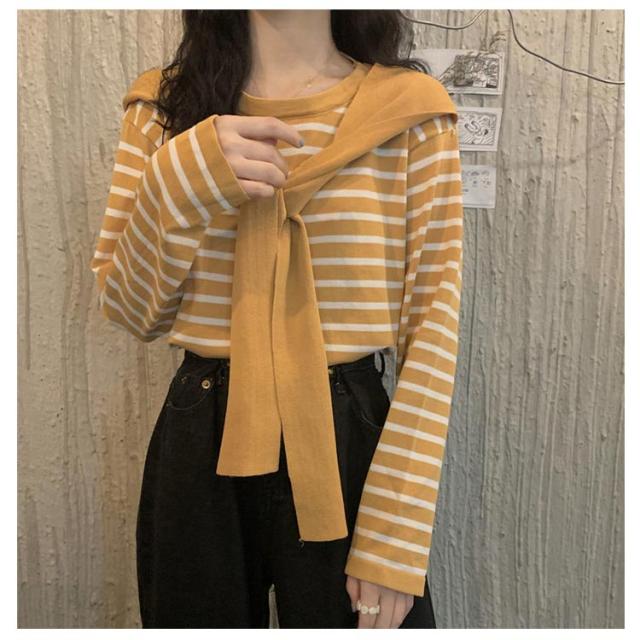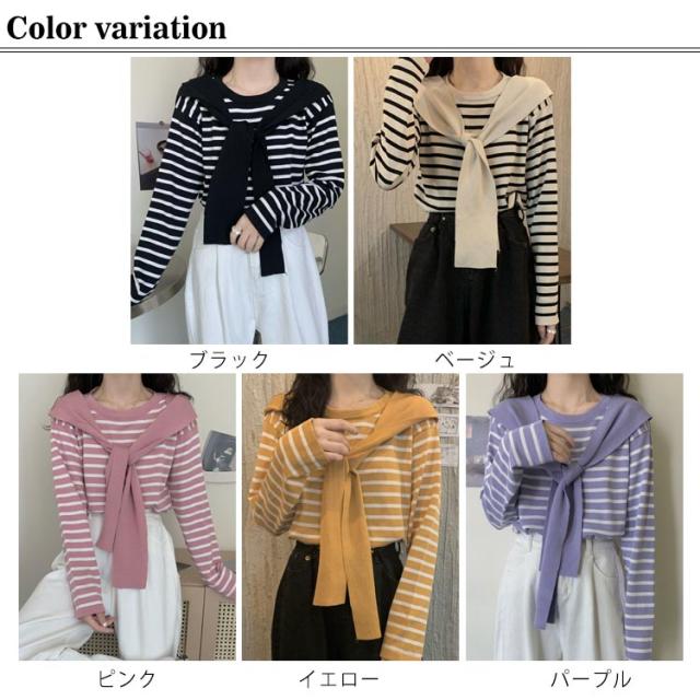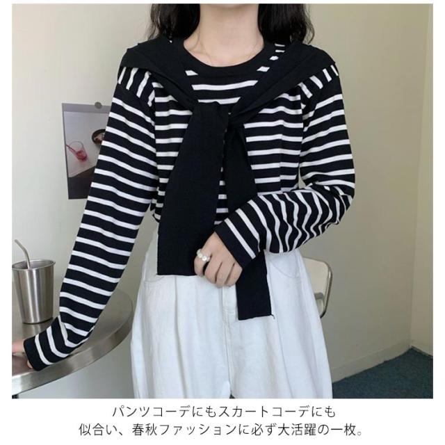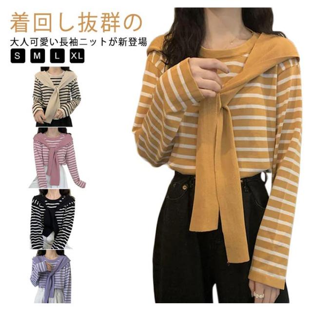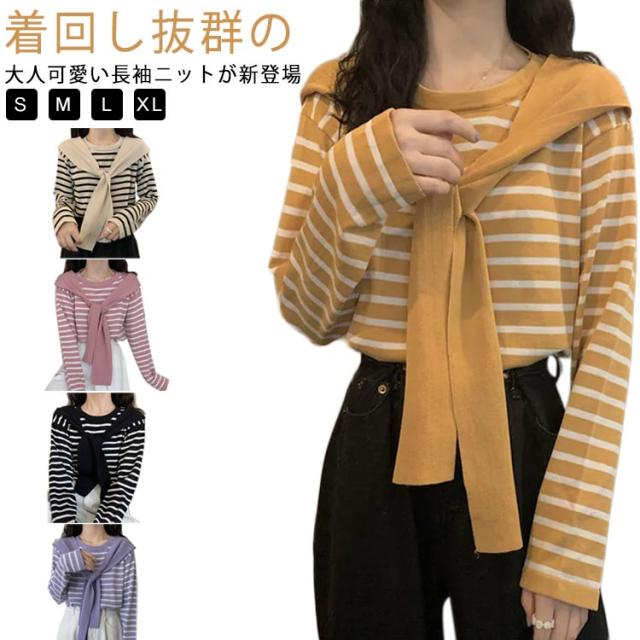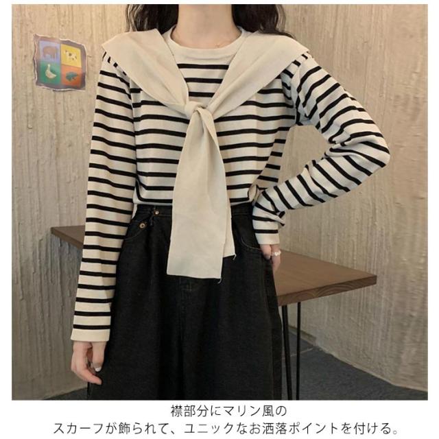 スカーフ付き カットソー 着回し レディース ニット レディース トップス Tシャツ カットソー ギフト プレゼント プルオーバー 重ね着 着痩せ スカーフ ゆったり マリンセーラー カジュアル 長袖 春秋 ニット30代 40代 50代 体型カバー