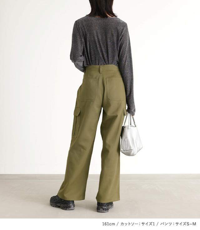 【送料無料】『ラメシアークルーネックカットソー×ワイドカーゴパンツコーデ2点SET』【メール便不可】【25】[2点コーデセット 2024 レディース カットソー トップス ロンT ワイドパンツ カーゴパンツ ボトムス]