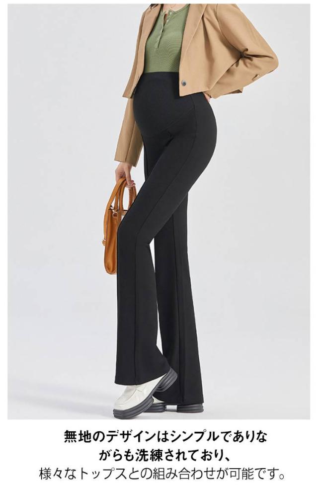| ☆このフレアパンツは、産前から産後まで長期間にわたりご使用いただけるよう、サポート性とストレッチ性に優れています。ハイウェストデザインがおなか周りをしっかりとサポートします。 ☆無地のデザインはシンプルでありながらも洗練されており、様々なトップスとの組み合わせが可能です。 ☆薄手で通気性があり、快適な着用感を提供します。また、妊娠専用として開発されているため、おなかへの負担を軽減し、自然な動きをサポートします。 | |