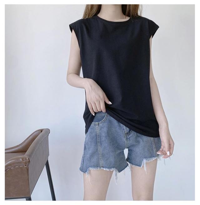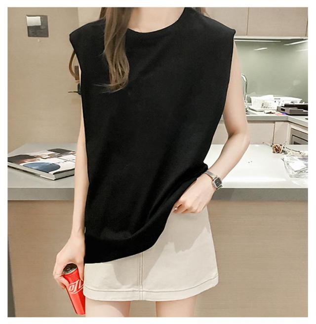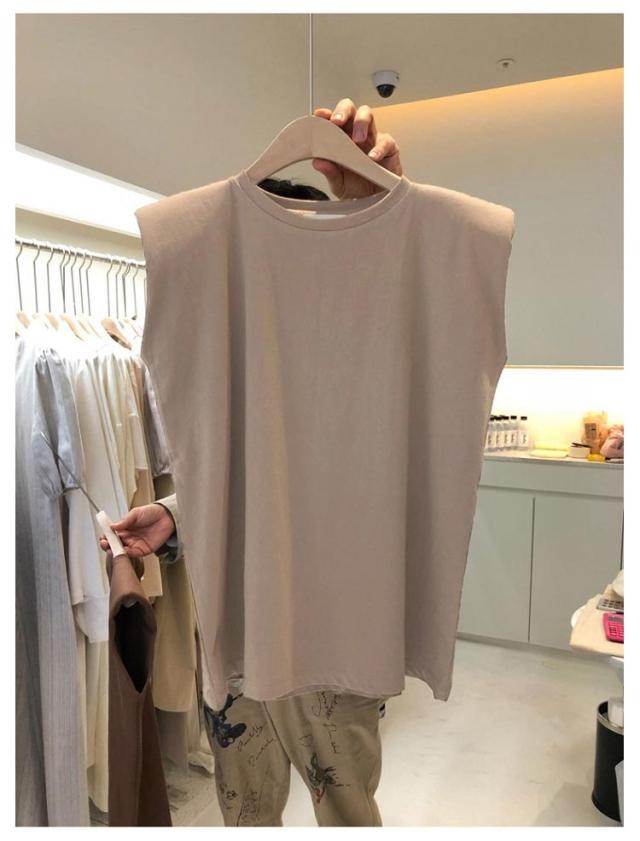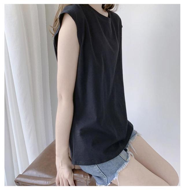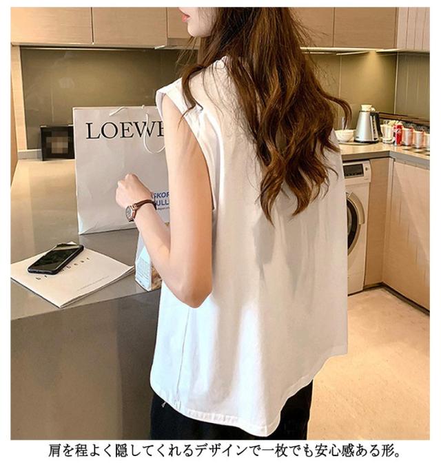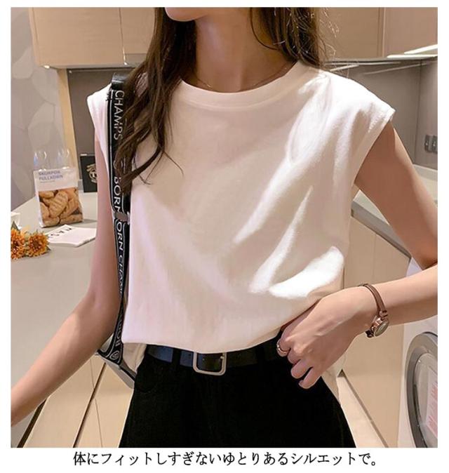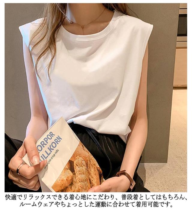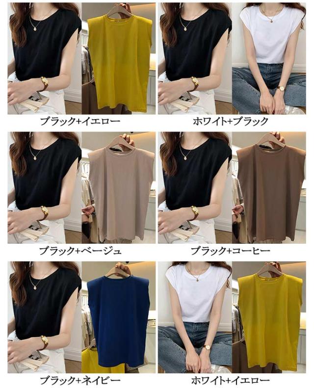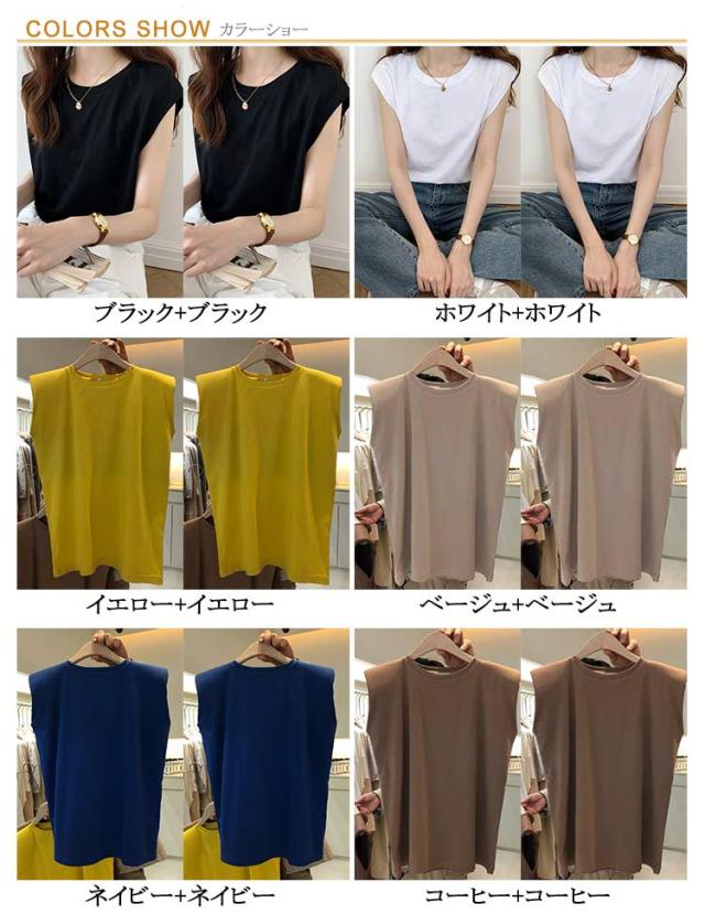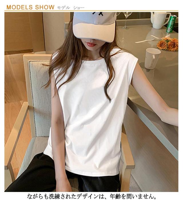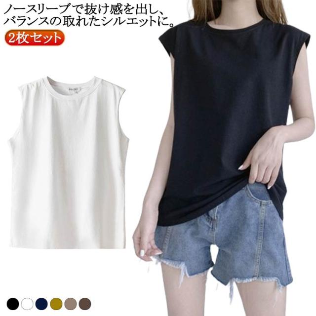 Tシャツ トップス 韓国ファッション ノースリーブ 春 タンクトップ 2枚セット シンプル カットソー 2枚セット インナー クルーネック 夏服 カジュアル 無地 夏 お洒落 ゆったり 大きいサイズ