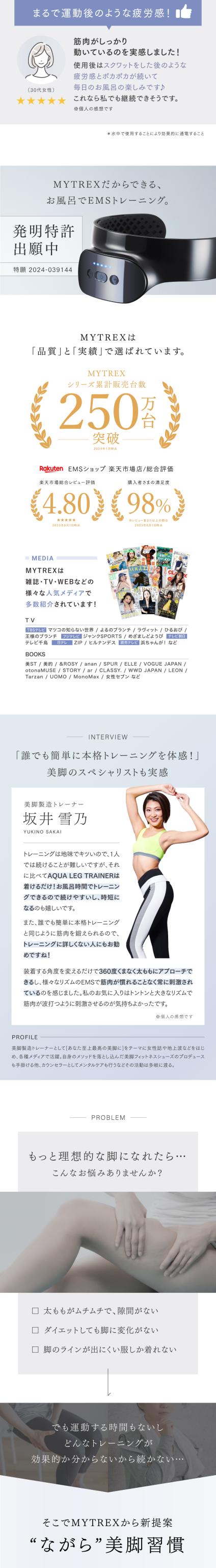 つけるだけエクササイズ 美脚 EMS 【公式】AQUA LEG TRAINER マイトレックス アクア レッグトレーナー 器具 トレーニング 風呂 IPX8 足 むくみ 疲れ ダイエット ヒップ 筋トレ 太もも 引き締め 筋肉 ギフト プレゼント クリスマス 母の日