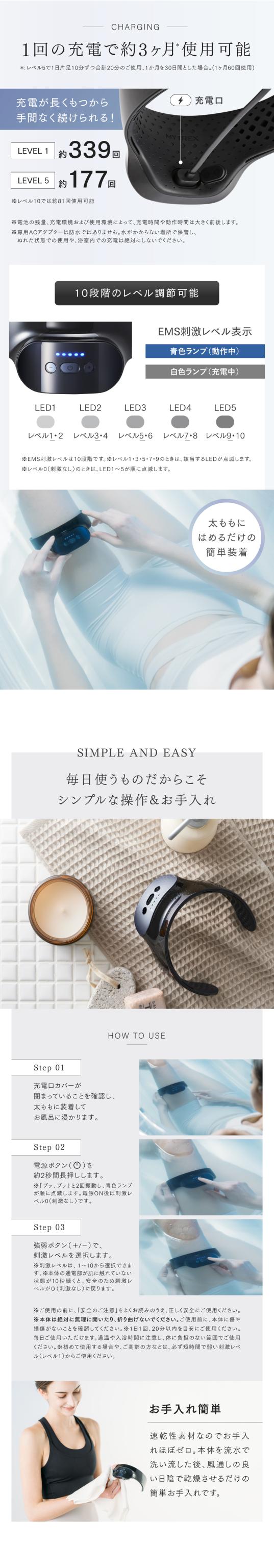 お風呂でつけるだけエクササイズ アクアレッグトレーナー 独自EMS搭載 内腿 完全防水 健康 補正下着 ガードル 着圧 キャビテーション