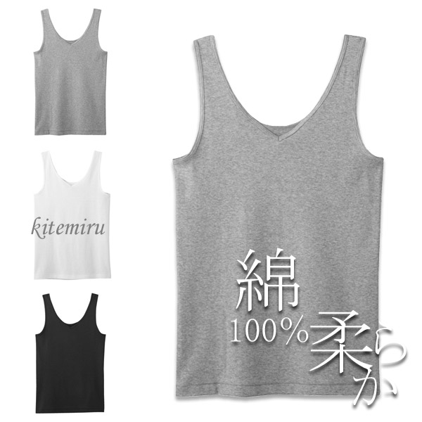 GUNZE kitemiru 柔らか綿100% 2wayタンクトップ Vネック&ラウンドネック グンゼキテミル #W3Q3 01-MF5054[M便 1/3]