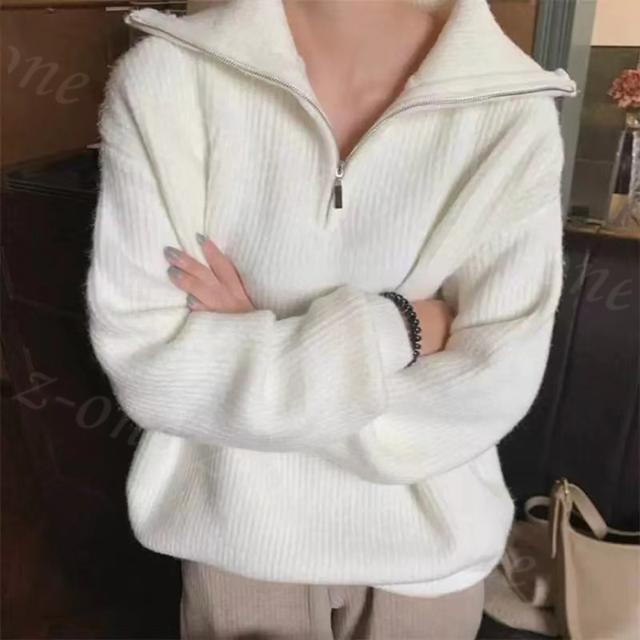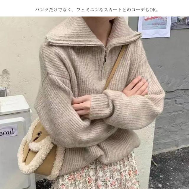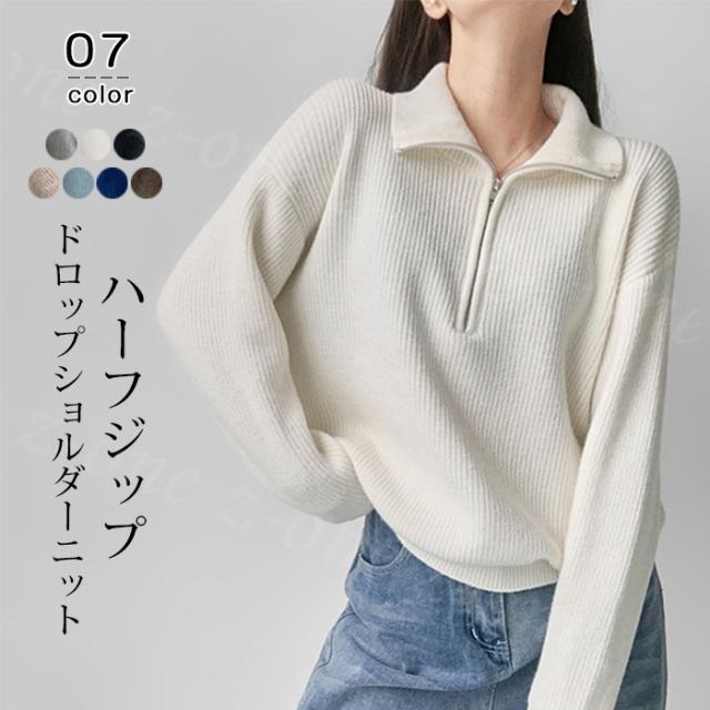 【 ハーフジップドロップショルダーニット 】