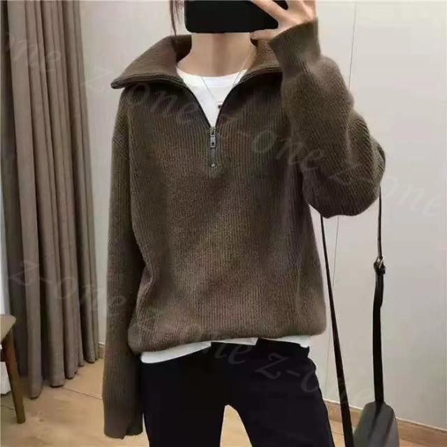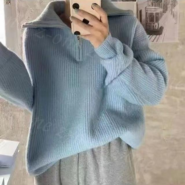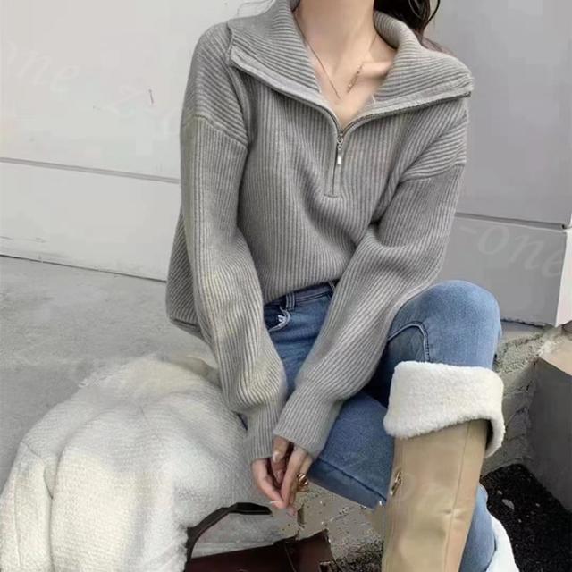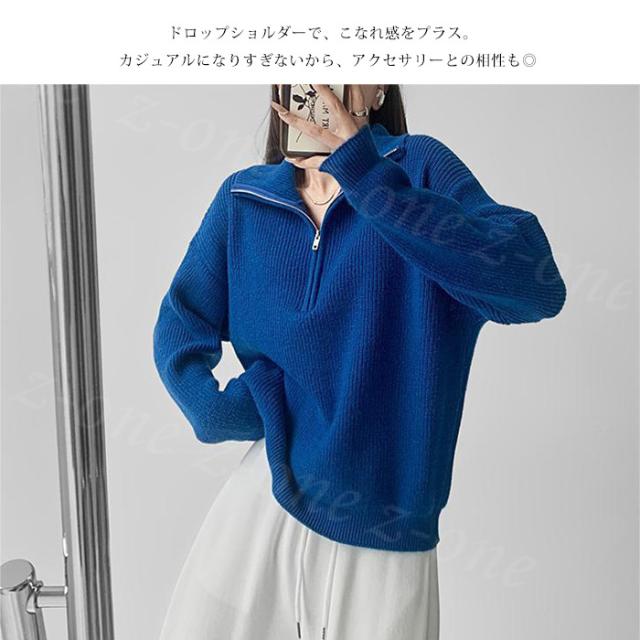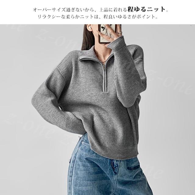 ニット セーター リブニット トップス レディース 春新作 送料無料 秋 冬 長袖 セーター ハーフジップ 暖かい ストレッチ 秋冬ニット シンプル 上品 着回し カジュアル 着痩せ 重ね着 オシャレ ファッション フリーサイズ 入学式 入園式