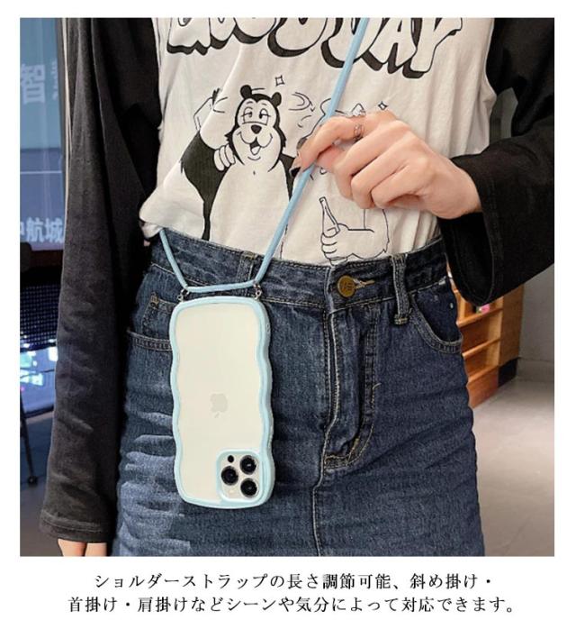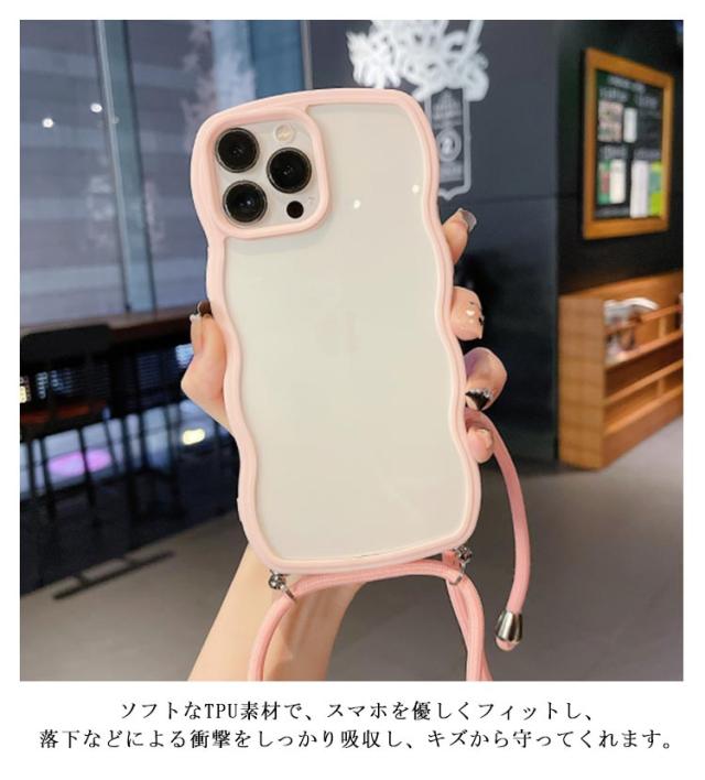 Pro 15 iPhone15 iPhone15 15 クリア Max iPhoneケース なみなみ スマホショルダー ケース ケース クリア うねうね 15Pro ストラップ付き 落下防止 iPhone ケース 15 ケース iPhone Plus ケース うねうね なみなみ ウェーブケース オシャレ