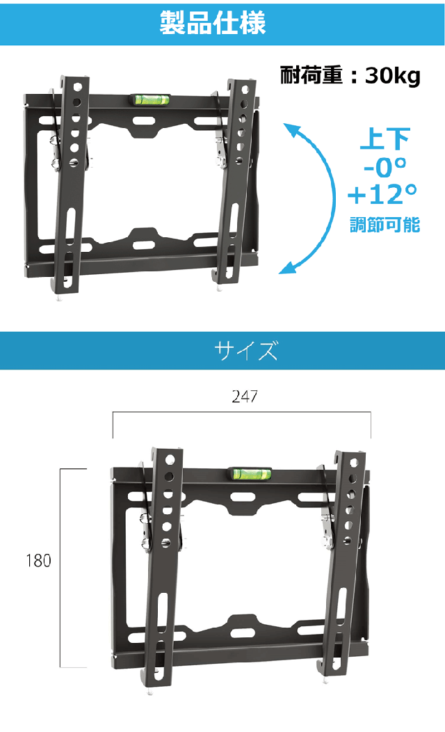 【対応サイズ】24〜55インチの液晶テレビ、PCモニターに対応可能。