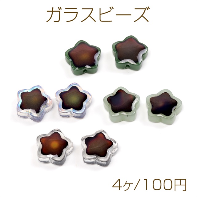 ガラスビーズ 温度で色変化 ミラージュ—ビーズ 星型 縦穴 約14×14.5mm (4ヶ)