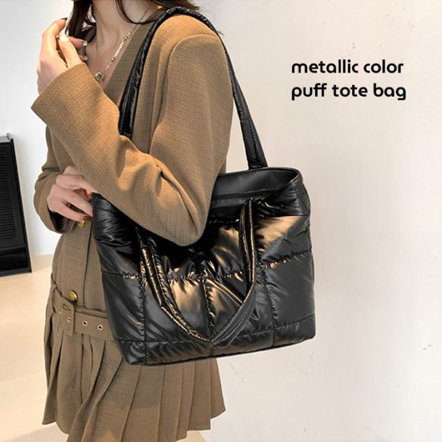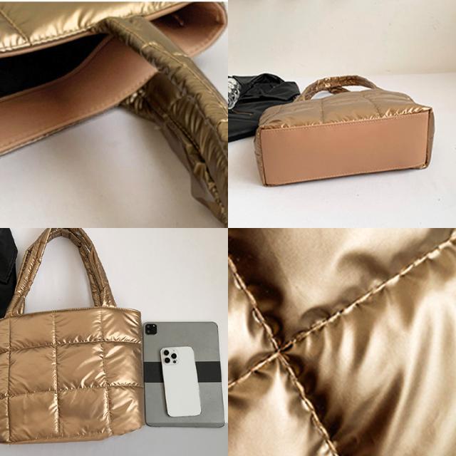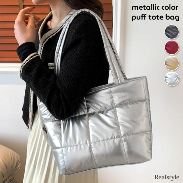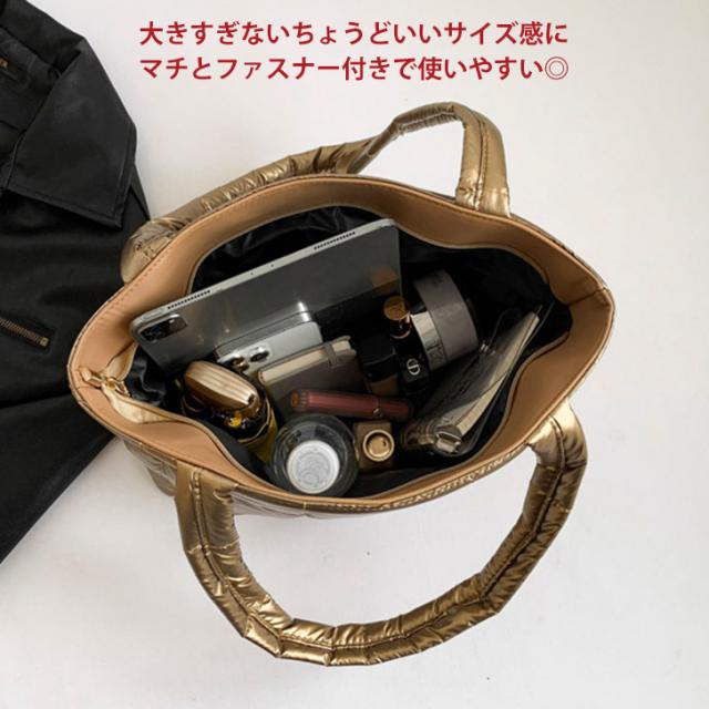 新作 トートバッグ レディース メタリックカラー パフバッグ 小さめ ショルダー 肩掛け 軽量 可愛い おしゃれ キルティング パフ 通勤 通学 旅行 大人 バック