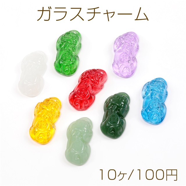 ガラスチャーム 貔貅モチーフ ガラスペンダントトップ 立体ひきゅう型 縦穴 約15.5×30mm (10ヶ)