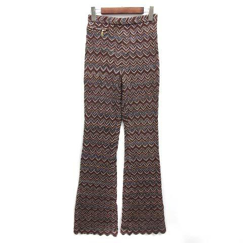 【中古】イタリヤ 伊太利屋 ヘリンボーン ウール ニット スカラップ フレア パンツ ブラウン 茶 7 レディース