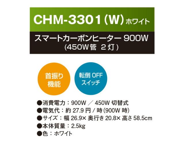 TEKNOS スマートカーボンヒーター CHM-3301(W) テクノス 省スペース カーボンヒーター 薄型 スリム 速暖 すぐあったか 遠赤外線 首振り ワイドにあたため 転倒時オフスイッチ 安心 省エネ ![]() ![]() ![]() ![]() ![]() | ||||