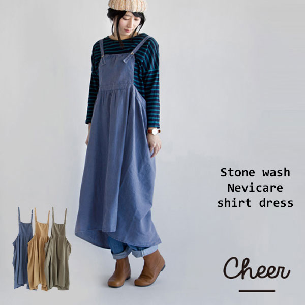 【クリアランス価格】【送料無料】 Cheer ストーンウォッシュ ネヴィカーレ エプロン ワンピース 春 夏 秋 チアー 95-312005