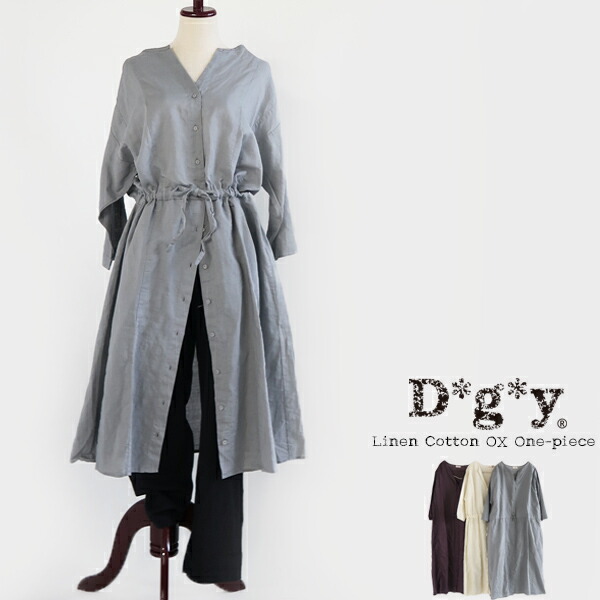 【クリアランス価格】【送料無料】 D*g*y リネンコットン オックス Vネック ギャザー ワンピース 春 夏 秋 dgy デコカンパニー ディージーワイ 88-D8173