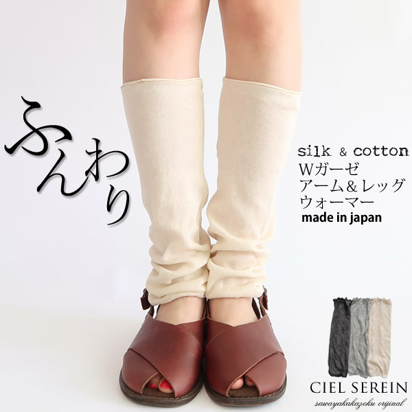 【メール便送料無料】ciel serein シルクと綿のWガーゼ 二重編みアーム&レッグウォーマー 【日本製】 絹 コットン 天然繊維 シエルスラン #WQ6 02-8733[M便 1/6]