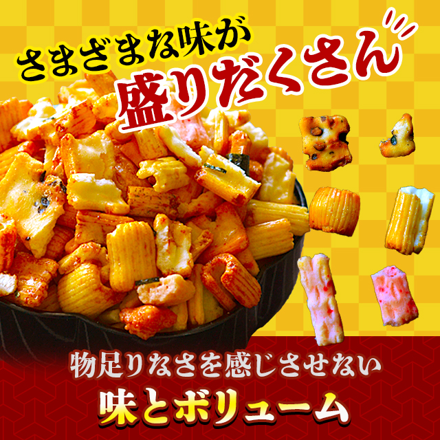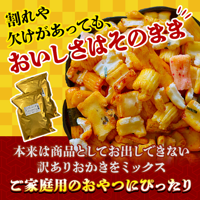 ・たっぷりボリュームの「訳あり 割れおかきミックス」をお届け。