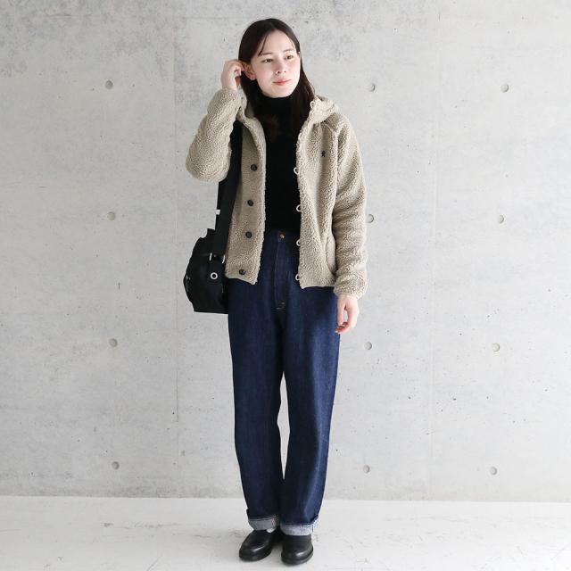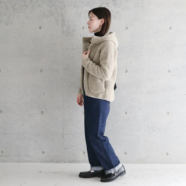 小ぶりなフードでサイドシルエットもすっきり。 あたたかみのあるボア素材