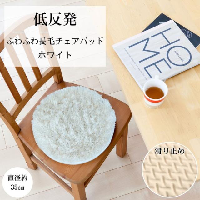 長毛チェアパッド円座 ホワイト 35cm丸型 ふわふわ手触り 低反発ウレタン入り 裏面滑り止め