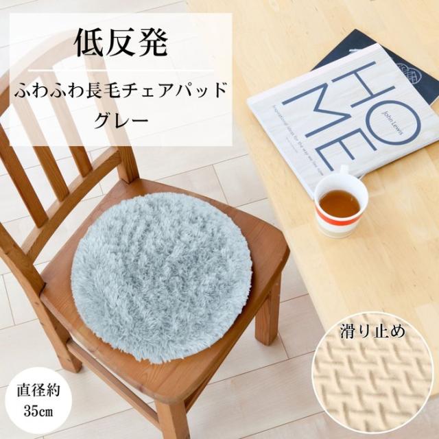長毛チェアパッド円座 グレー 35cm丸型 ふわふわ手触り 低反発ウレタン入り 裏面滑り止め