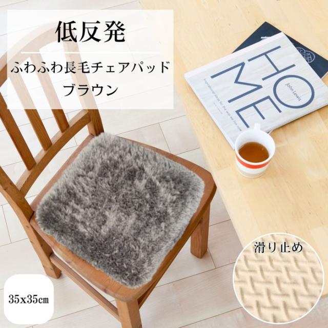 長毛チェアパッド円座 ブラウン 35x35cm角型 ふわふわ手触り 低反発ウレタン入り 裏面滑り止め