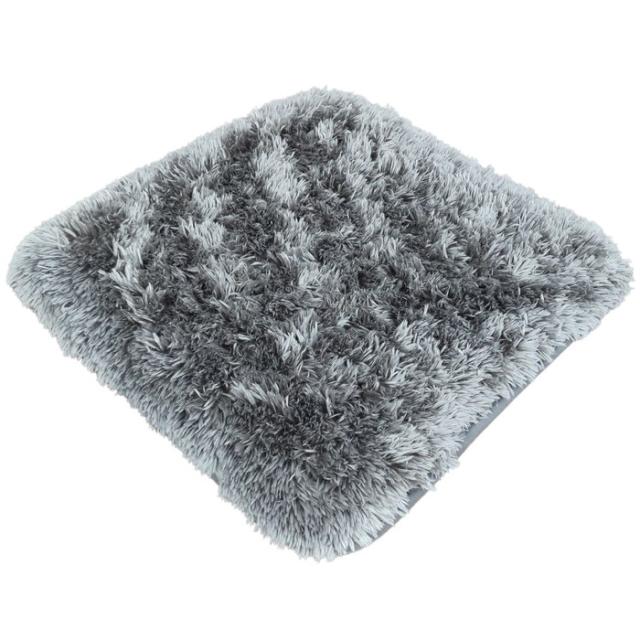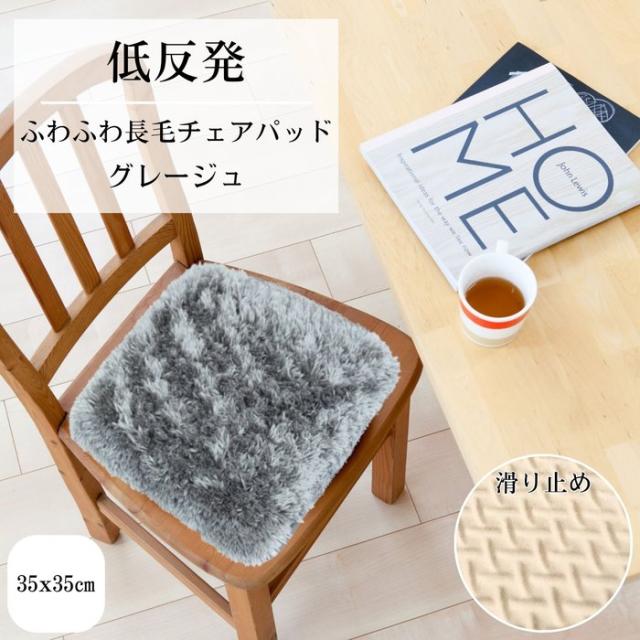 長毛チェアパッド円座 グレージュ 35x35cm角型 ふわふわ手触り 低反発ウレタン入り 裏面滑り止め