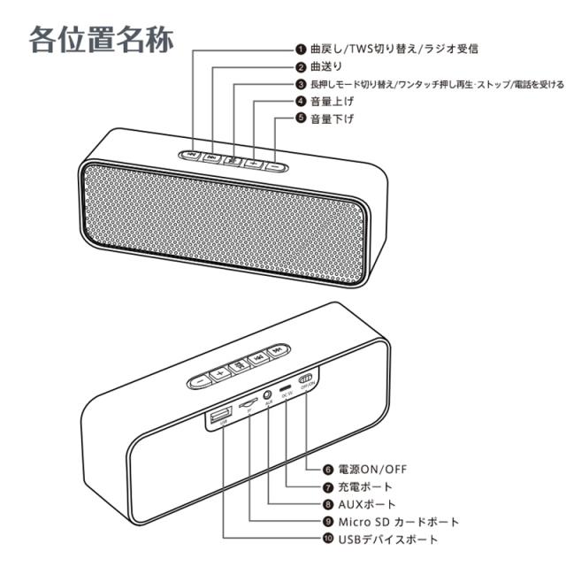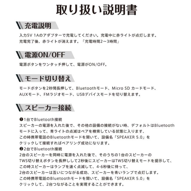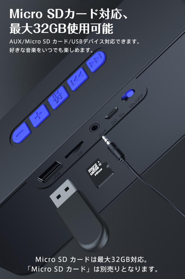 ●Bluetooth 5.0µ SDカード&USBメモリー&AUX有線接続対応のワイヤレススピーカーです。