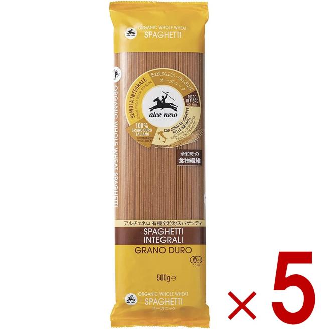 アルチェネロ 有機 全粒粉スパゲッティ 500g イタリア産 オーガニック パスタ 1.6mm 保存食 全粒粉 スパゲッティ 5個