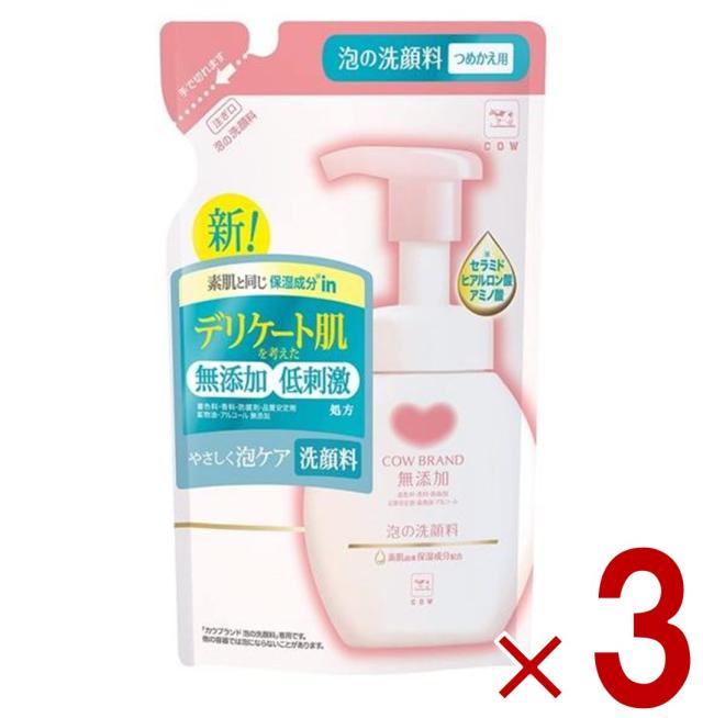 牛乳石鹸共進社 カウブランド 無添加 泡の洗顔料 つめかえ用 140ml 牛乳石鹸 詰め替え 詰替 3個
