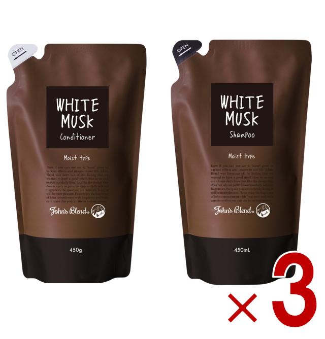 ジョンズブレンド シャンプー コンディショナー 詰め替え ホワイトムスク モイストタイプ アミノ酸配合 詰替え 各3個