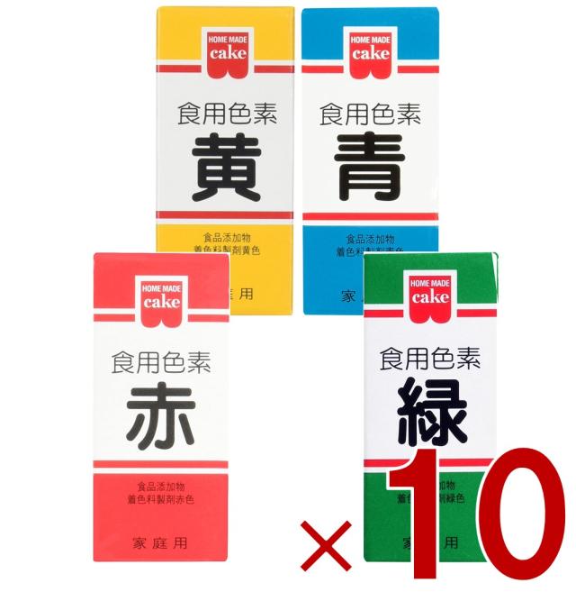共立食品 食紅 ホームメイド 食用色素 4種 (赤 青 緑 黄) 粉末 お菓子作り 2g 10個
