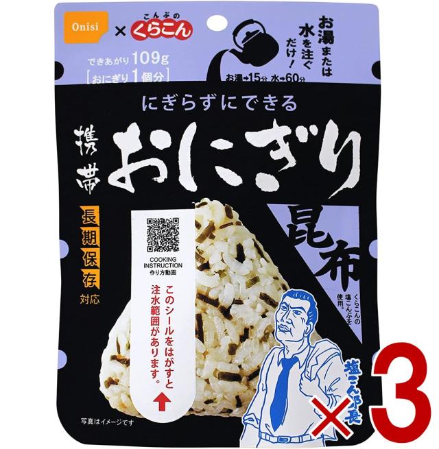 【23-29日限定 タイムセール】保存食 尾西食品 携帯おにぎり 昆布 非常食 保存食 賞味期限 5年 保存 アルファ米 レトルト キャンプ バーベキュー アウトドア 登山 3個