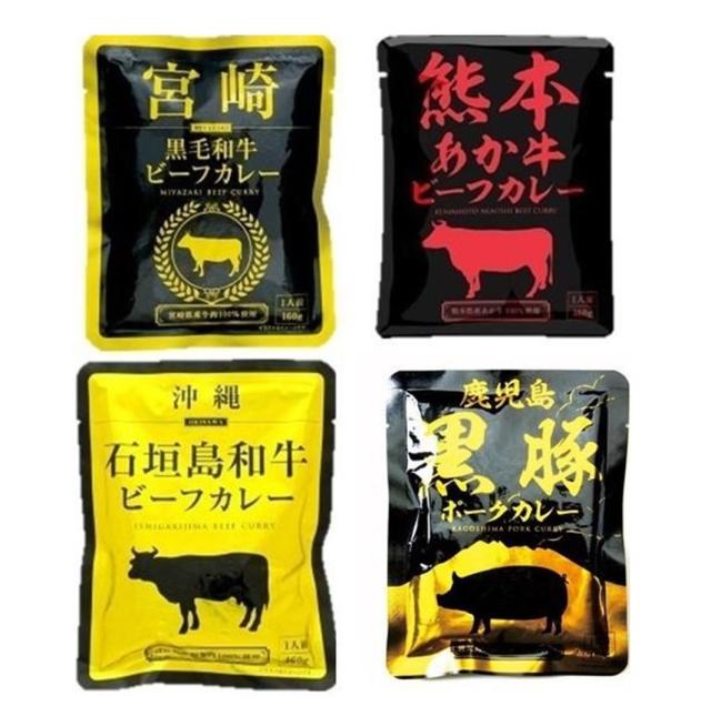 宮崎黒毛和牛、熊本あか牛、沖縄石垣島和牛、鹿児島県黒豚ポークカレー