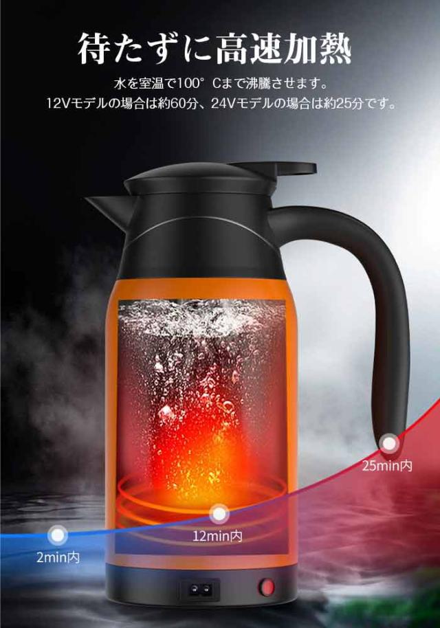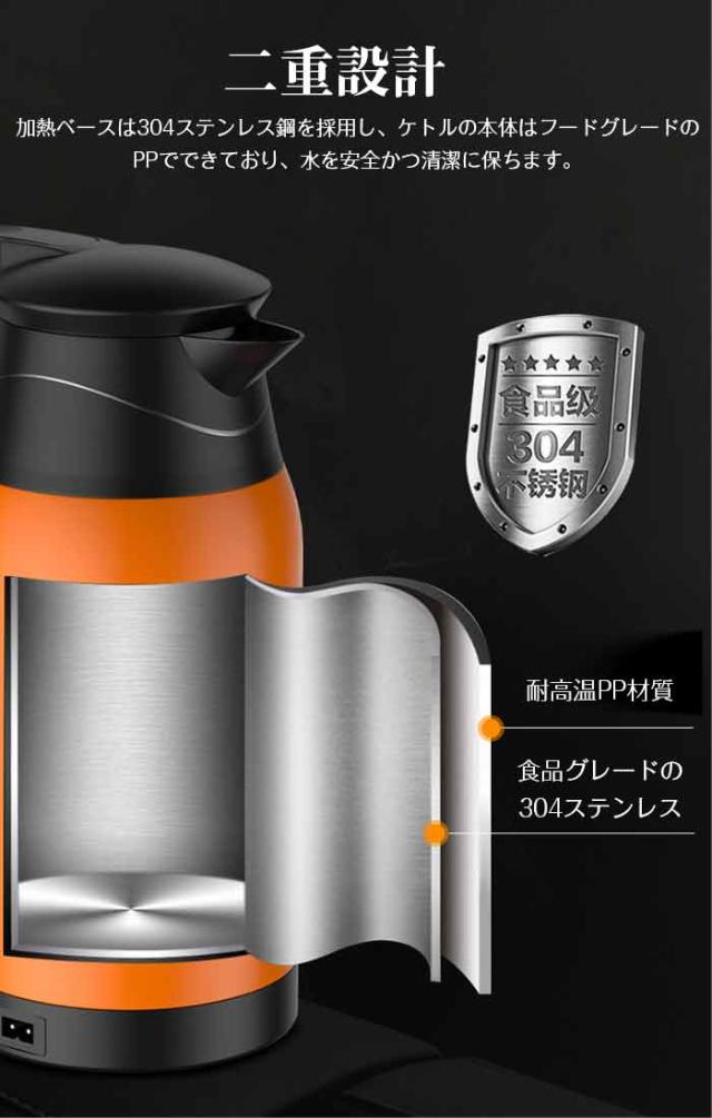 車載用 電気ケトル 車用 電気湯沸かし器 カーヒーター 二重ステンレス鋼 保温ポット キャンプ用品 カー用品 アウトドア用品 トラック用品 車中泊 旅行用 長距離ドライブ