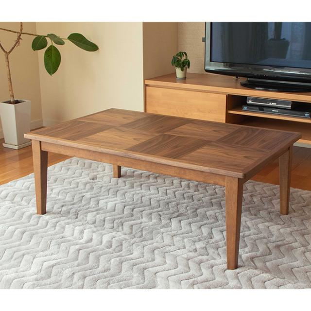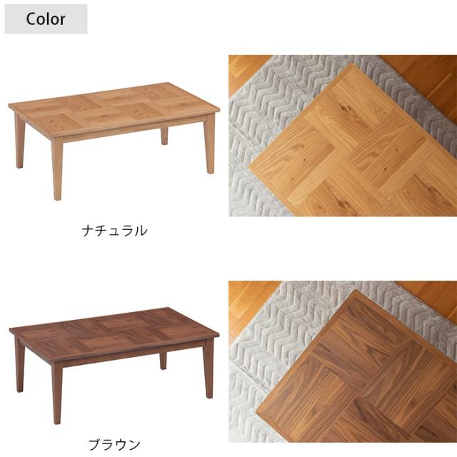 木目を生かしたモザイク調天板がおしゃれな幅105cmの長方形こたつテーブル。