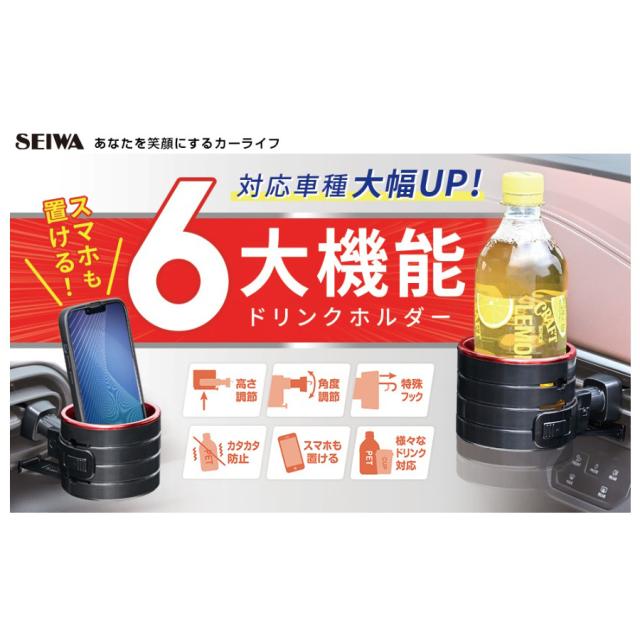 「セイワ 車用 ハイトアジャストACドリンク ブラック×メタルレッド WA111」は株式会社ホームセンターセブンが販売しております。