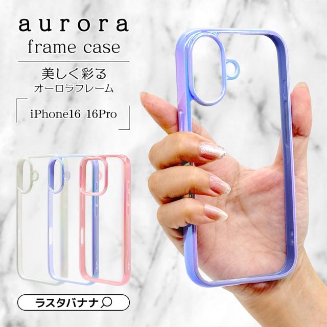 iPhone16 16 Pro ケース カバー ハイブリッド aurora 耐衝撃吸収 TPUバンパーケース オーロラフレーム ストラップホール ラスタバナナ